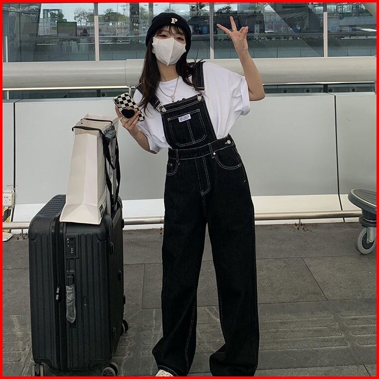 Gadis Celana Strap Denim Hitam Ukuran S-3xl