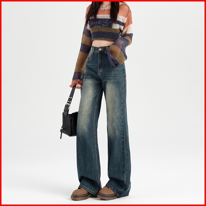 Alice Jeans-biru Retro Highwaist Baggy Jeans Cwek Style Fashion Celana Cutbray Jeans Wanita