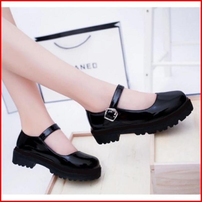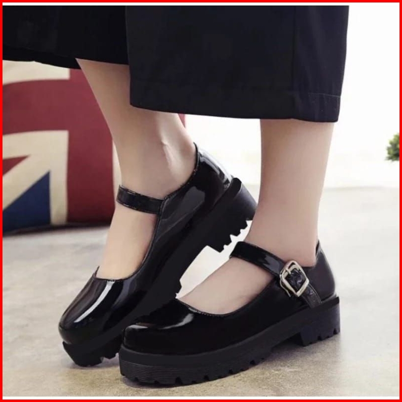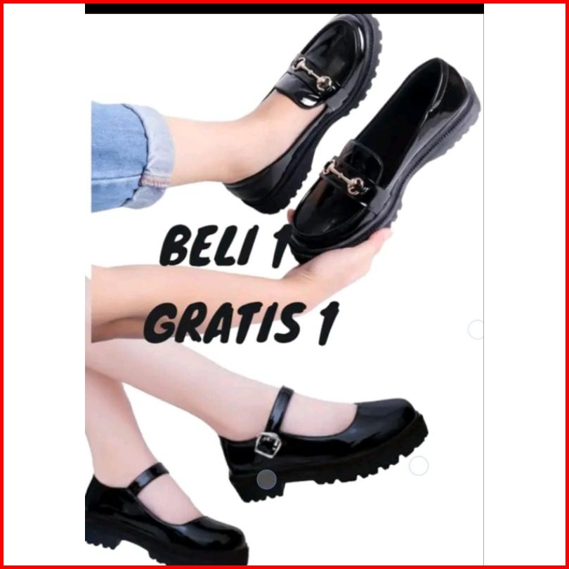 Beli 1 Gratis 1 Sepatu Docmart Loafer Korean Style Wanita Sepatu Flat Selop Glosy Sepatu