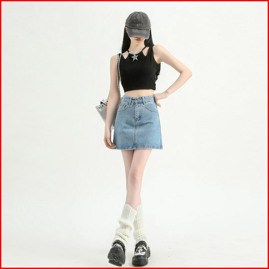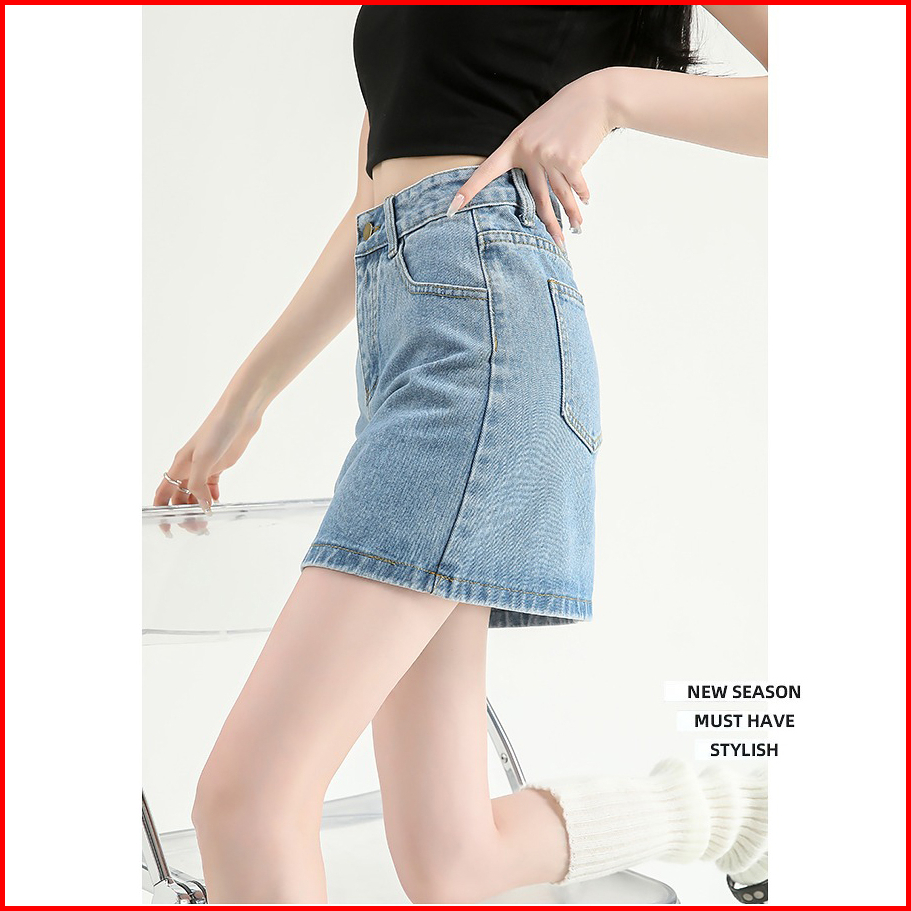 Alice Rok-highwaist Rok Jeans Pendek A-line Rok Denim Import