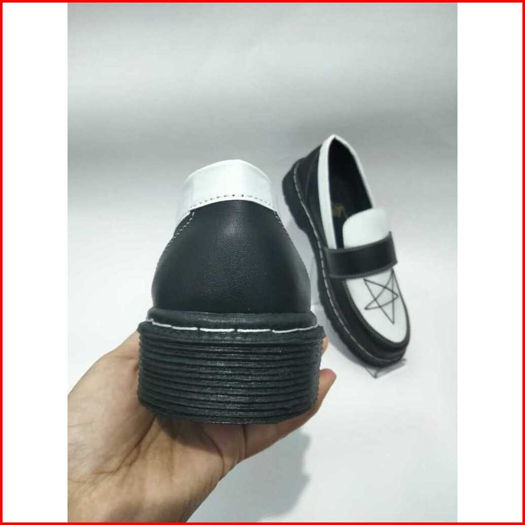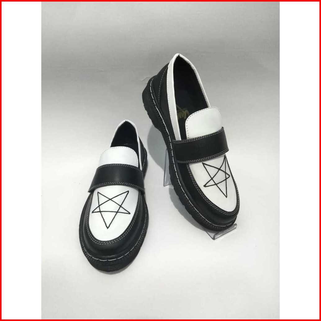 Sepatu Penny Loafers Docmart Bintang Hitam Putih Vintage Pria Wanita Casual Formal