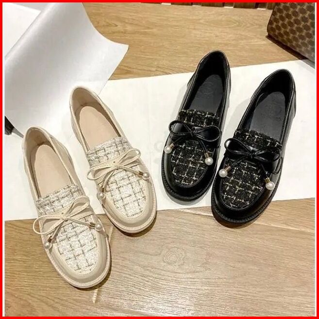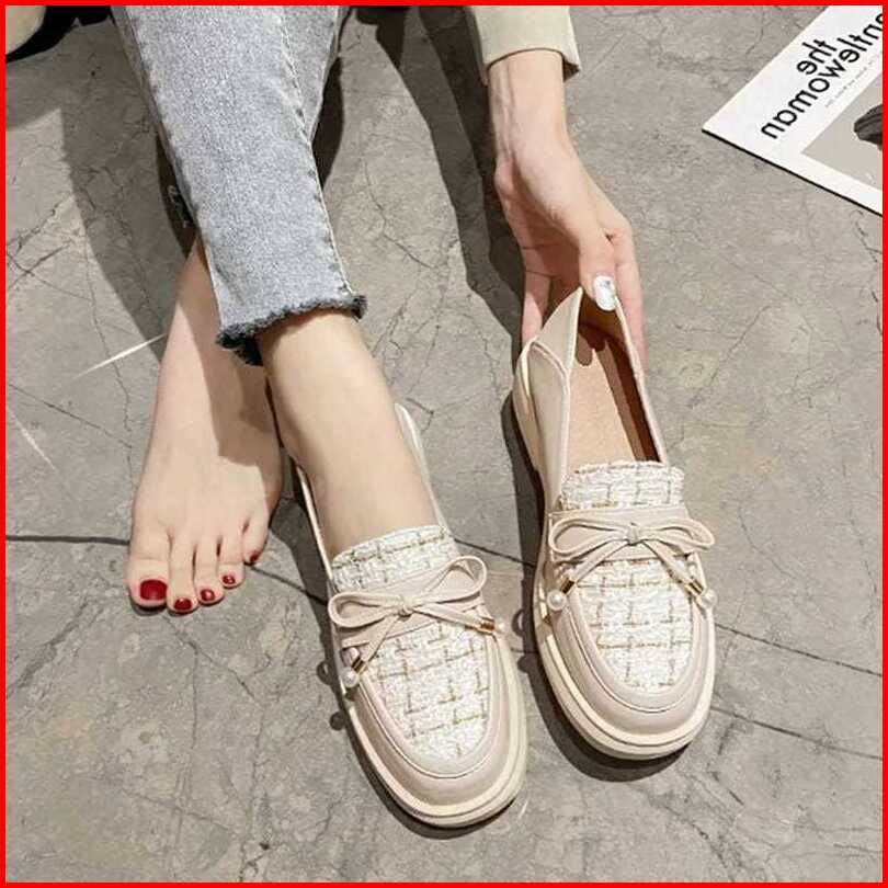Sepatu Wanita Docmart Loafers Pita Mutiara Gaya Kekinian Premium Quality