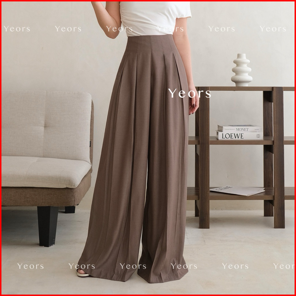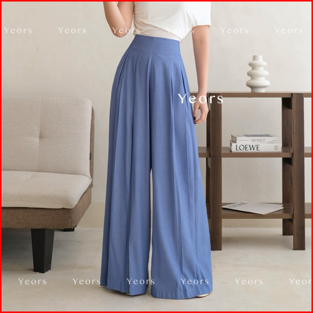 Yeors - Livi Pants Denim Tencel - Celana Wide Kulot Polyester Anti Kusut - Trousers Kantor Formal Casual - Woman Formal