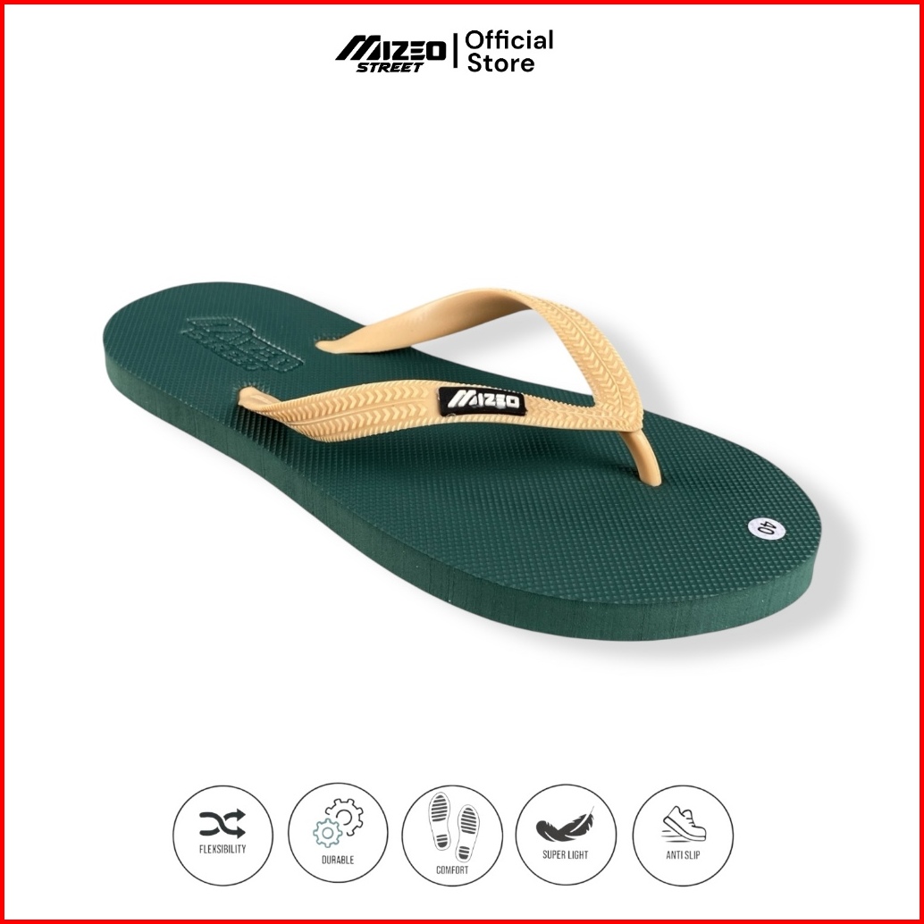 Mizeo Street Sandal Jepit Mix Warna Army - Cream M022 Pria Wanita Trendy