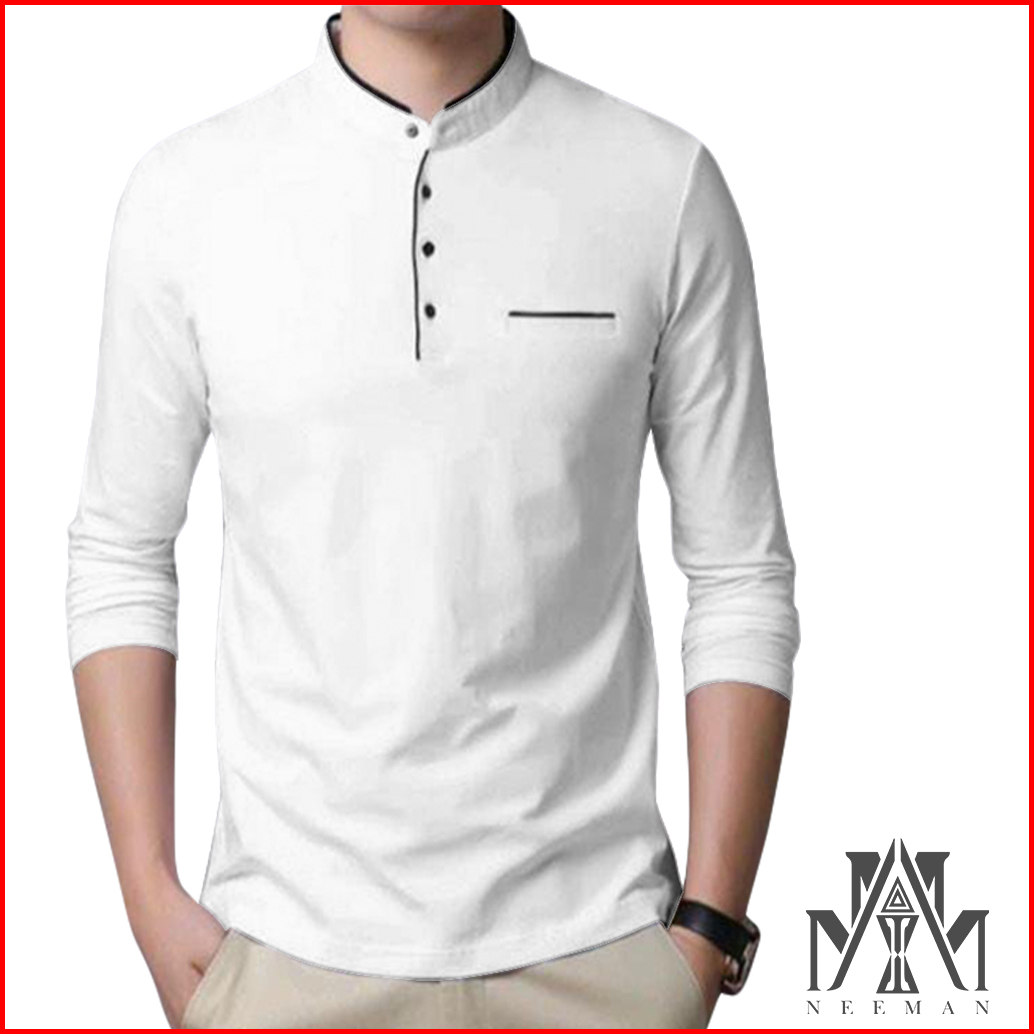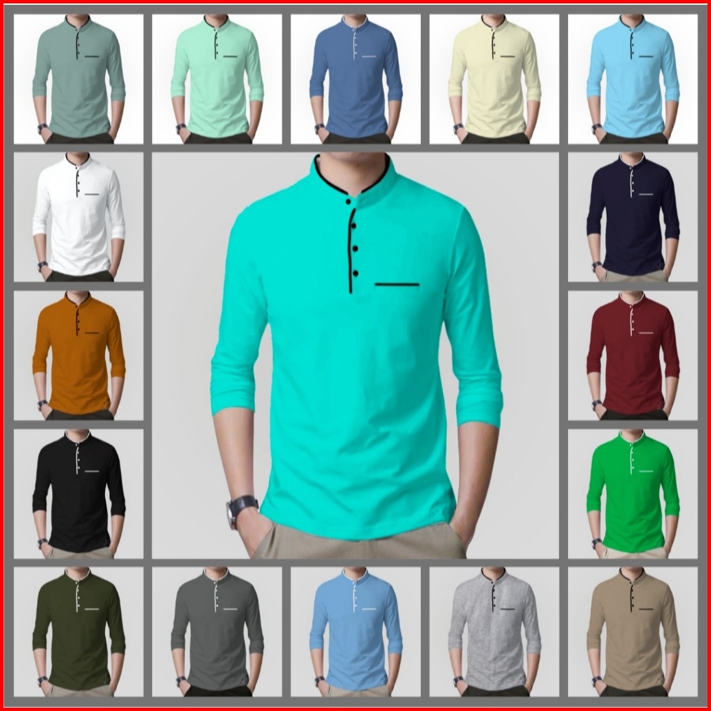 T-shirt Shanghai Kerah Pria Saku Lengan Panjang