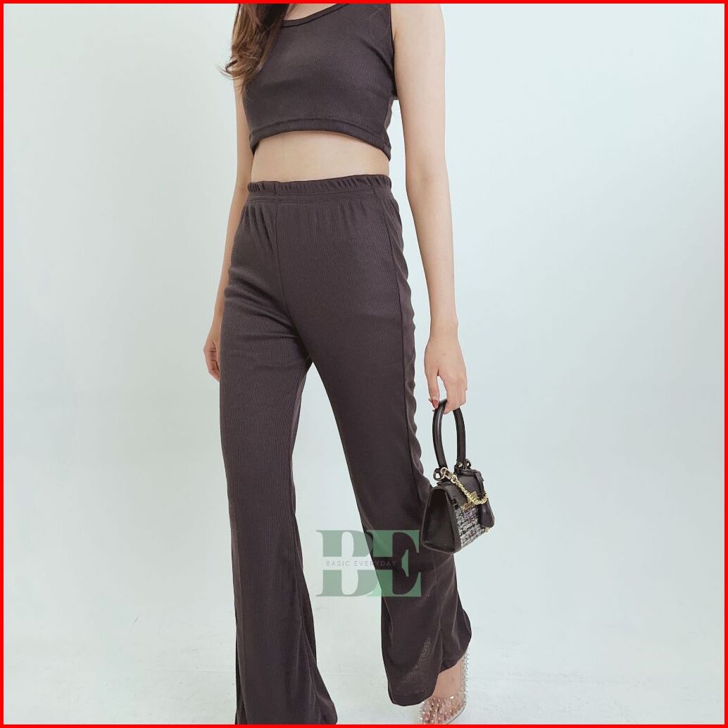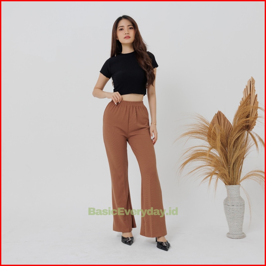 Basiceveryday Celana Cutbray Pants Wanita Basic Celana Rib Knit