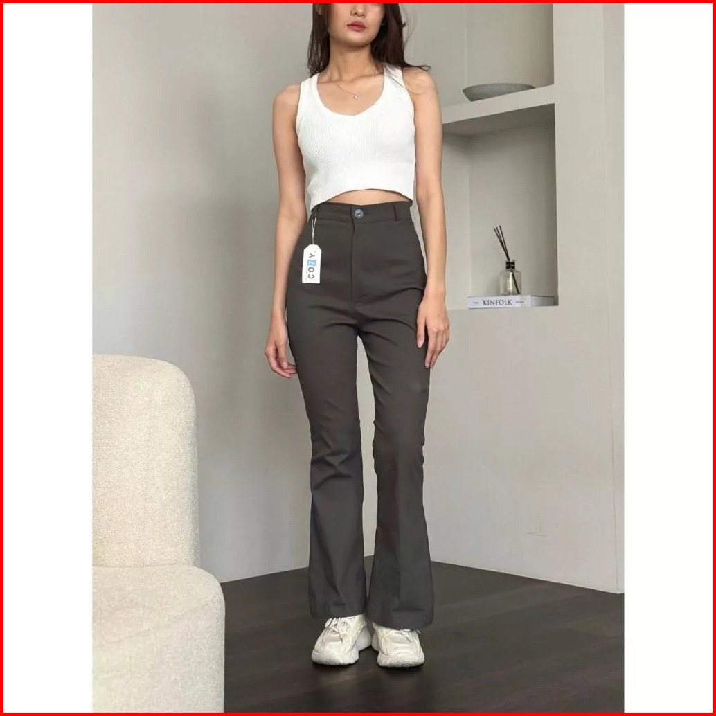 Flare Pants - Highwaist Kulot Cutbray - Celana Kantor Formal Casual Chinos Stretch Melar