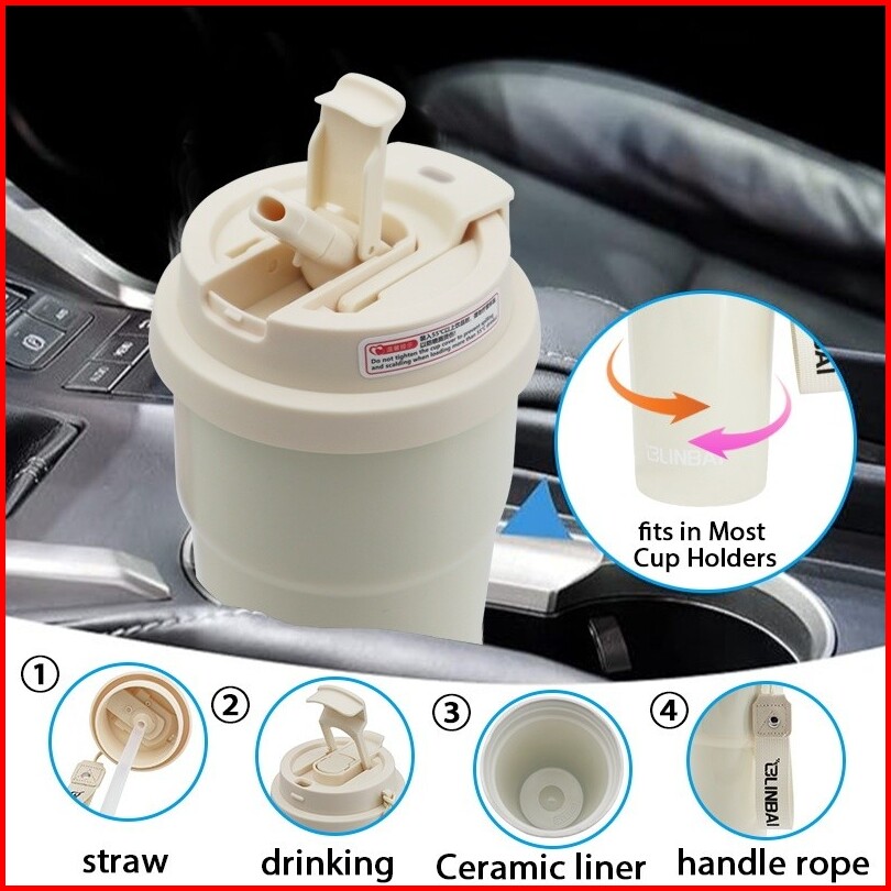 Linbai Flask 17oz Bow Tie Print Ceramic Liner Coffee Mug With Straw Vacuum Insulated Tumbler Hot And Cold Cup