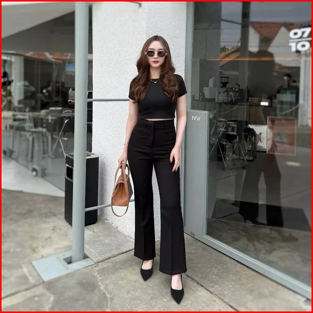 Kylie Cutbray Highwaist Pants - Celana Kerja Kantor Wanita Flare Semiwool Nyaman Anti Kusut