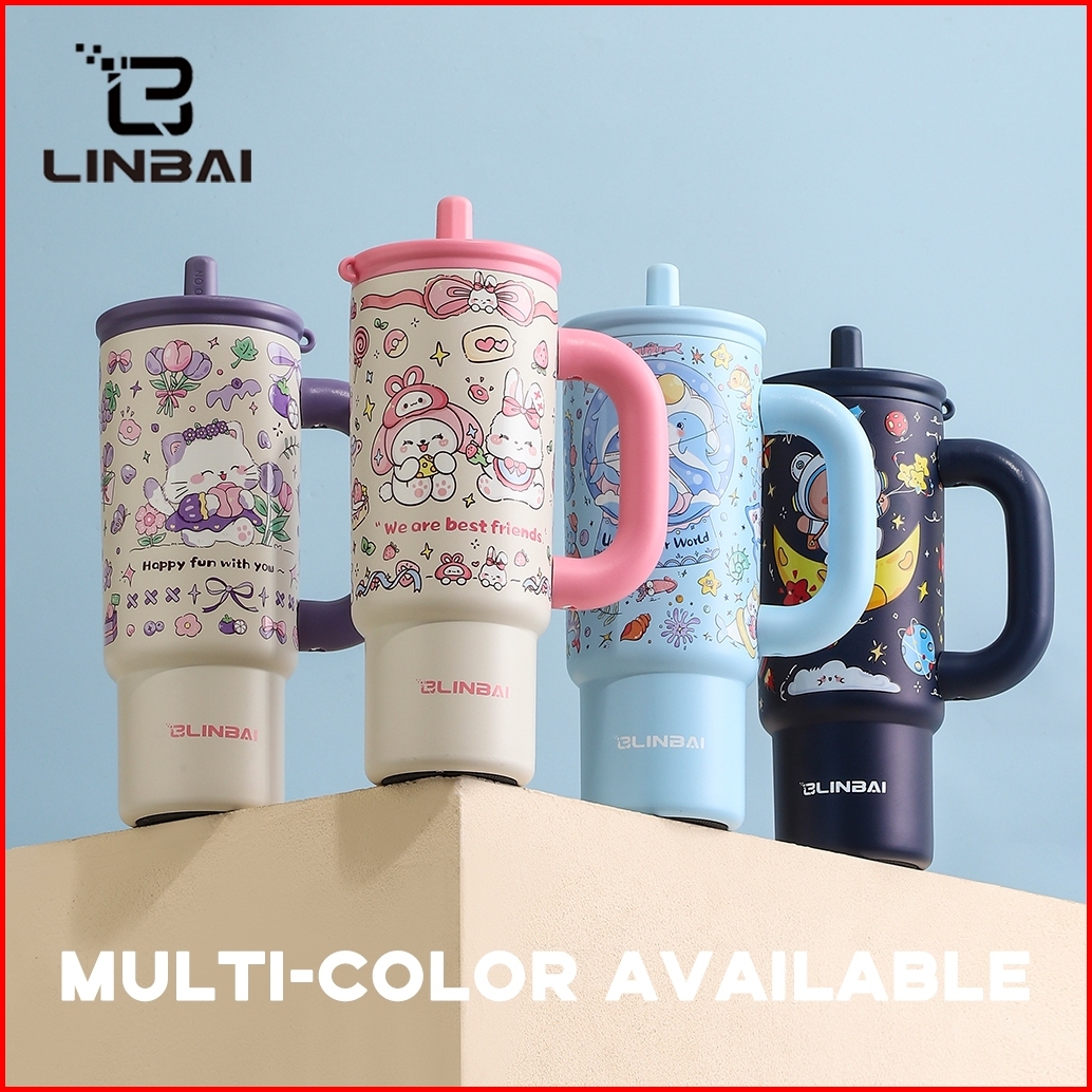 Linbai Flask 24oz Insulated Tumbler With Straw 304 Stainless Steel Sippy Water Bottle Double Wall Leakproof Vacuum Cup F