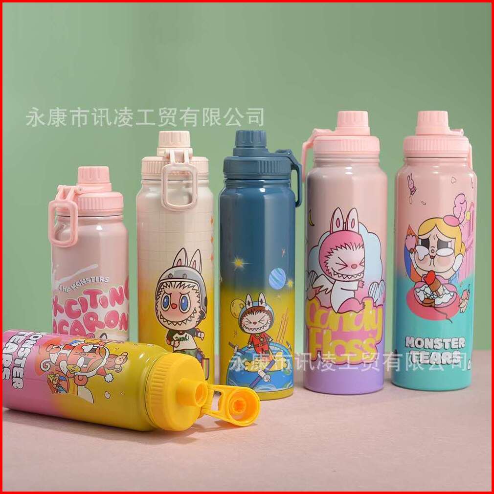 Termos Botol Minum Stainless Steel Motif Labubu I Termos Botol Tenteng Plastik Putar Gradasi 1 Warna I Sus 316 800ml 100