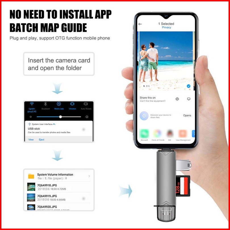 Rundycod 6 In 1 Sd Tf Reading Card High Speed Memeory Card Reader For Samsung Huawei Mobilephone Adapter Type C Usb 3.0