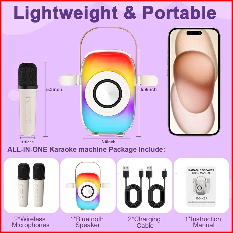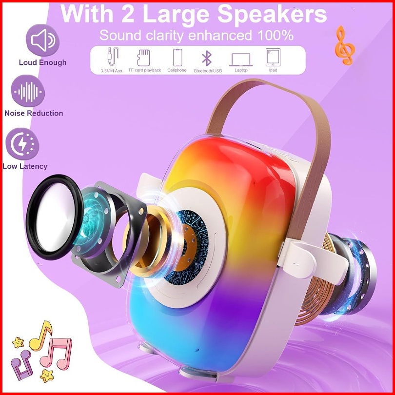 Rundycodspeaker Bluetooth Karaoke Wireless Colorful Lights Portable Mini Karaoke 2 Microphone Home Ktv Speaker Set Famil