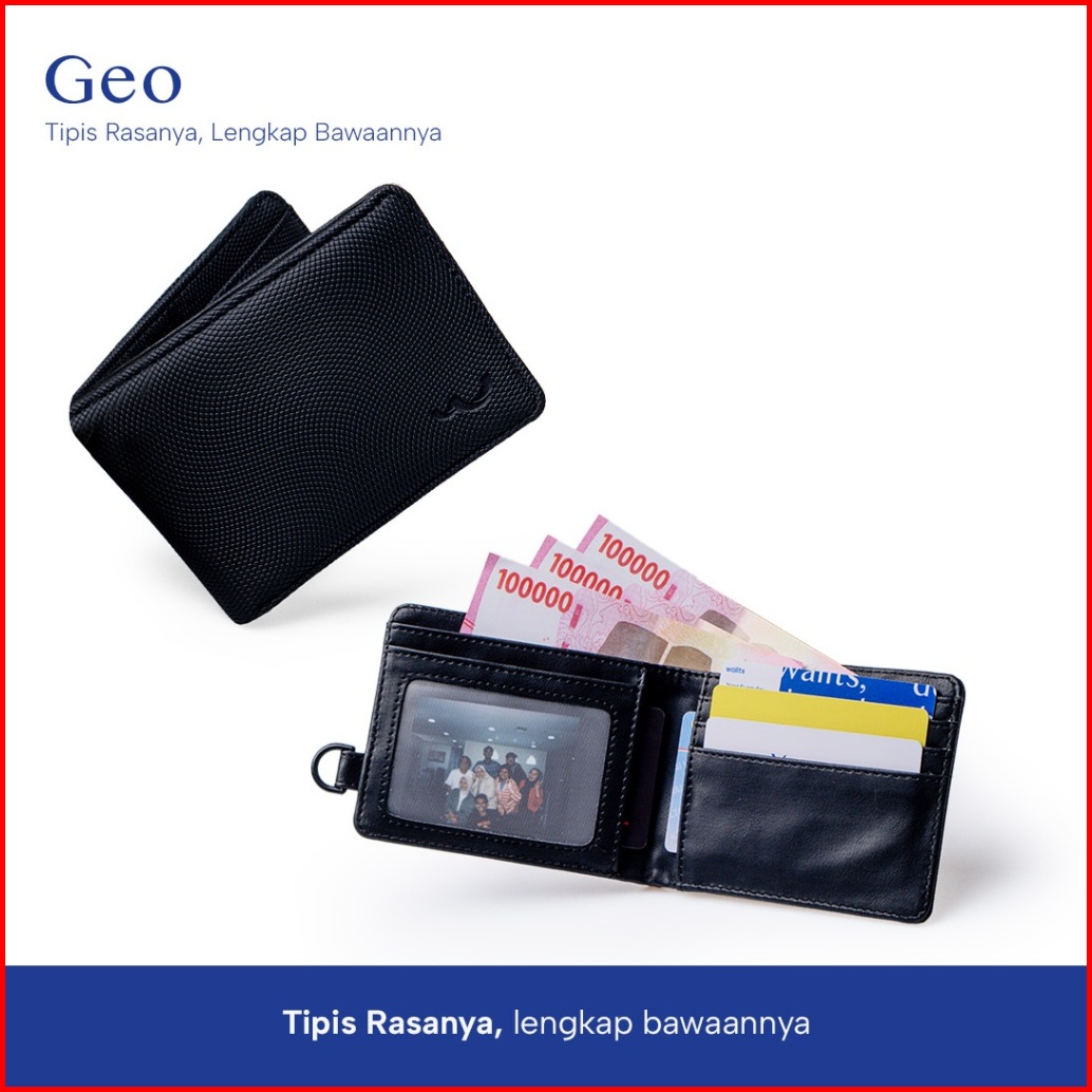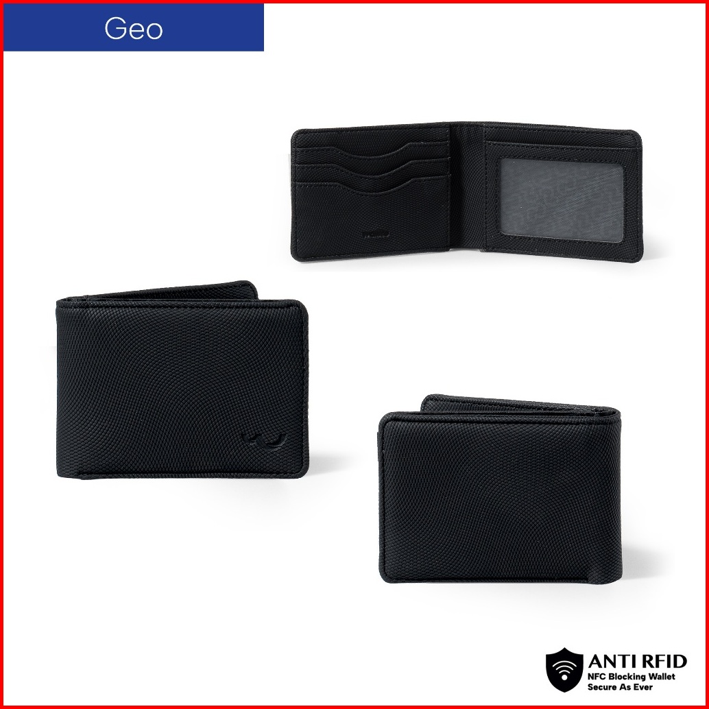 Wallts Geo Dompet Lipat Pria Faux Leather Kulit Hitam Men Wallet