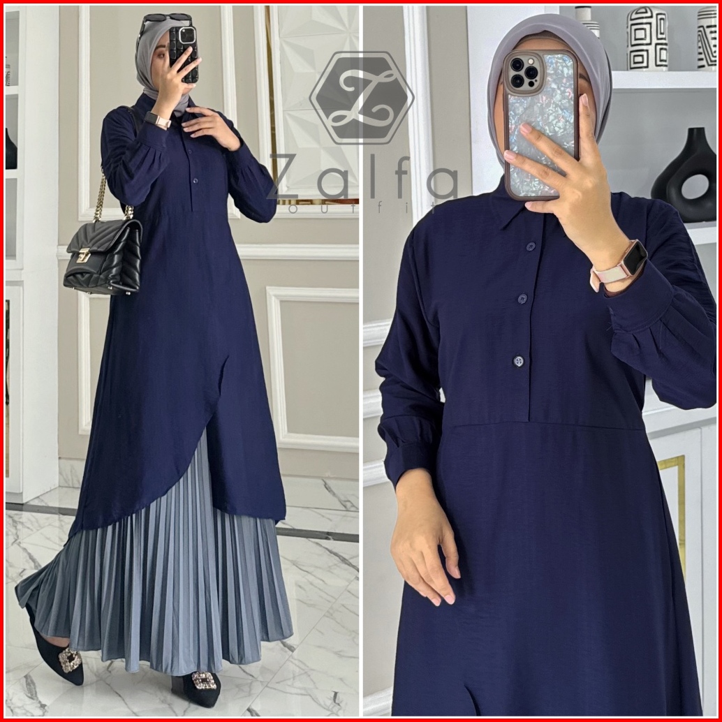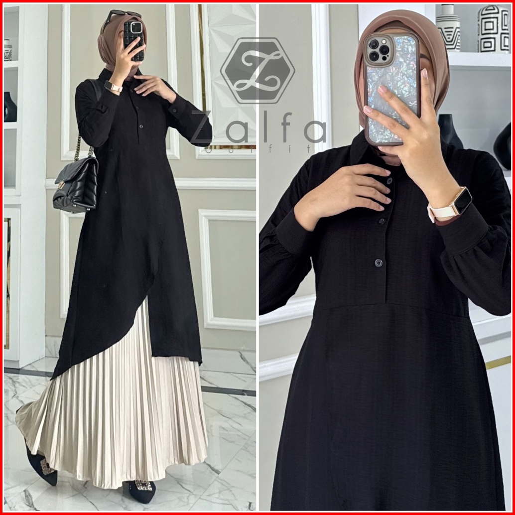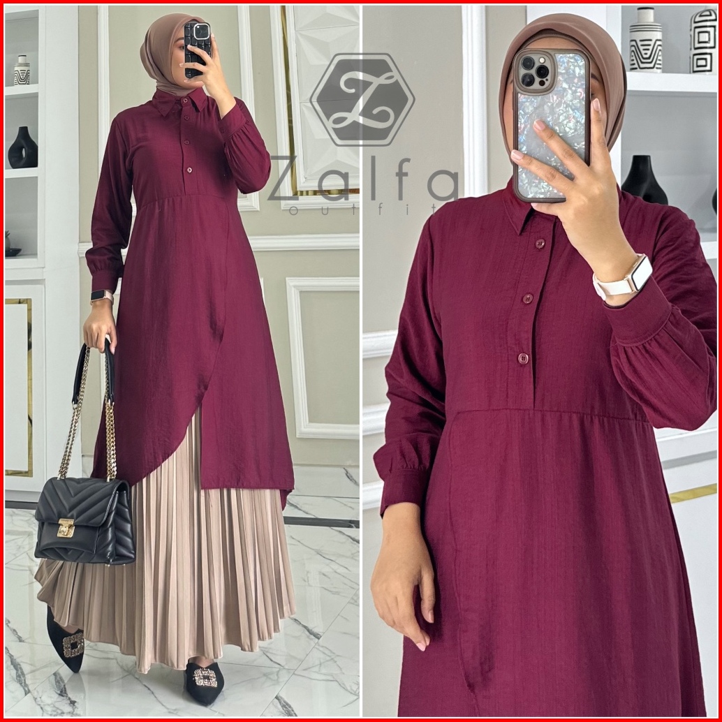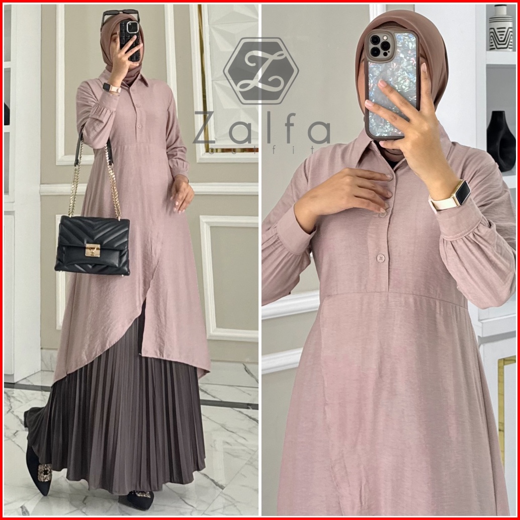 Kiara Tunik By Zalfa Outfit Tunik Polos Polo Linen Premium