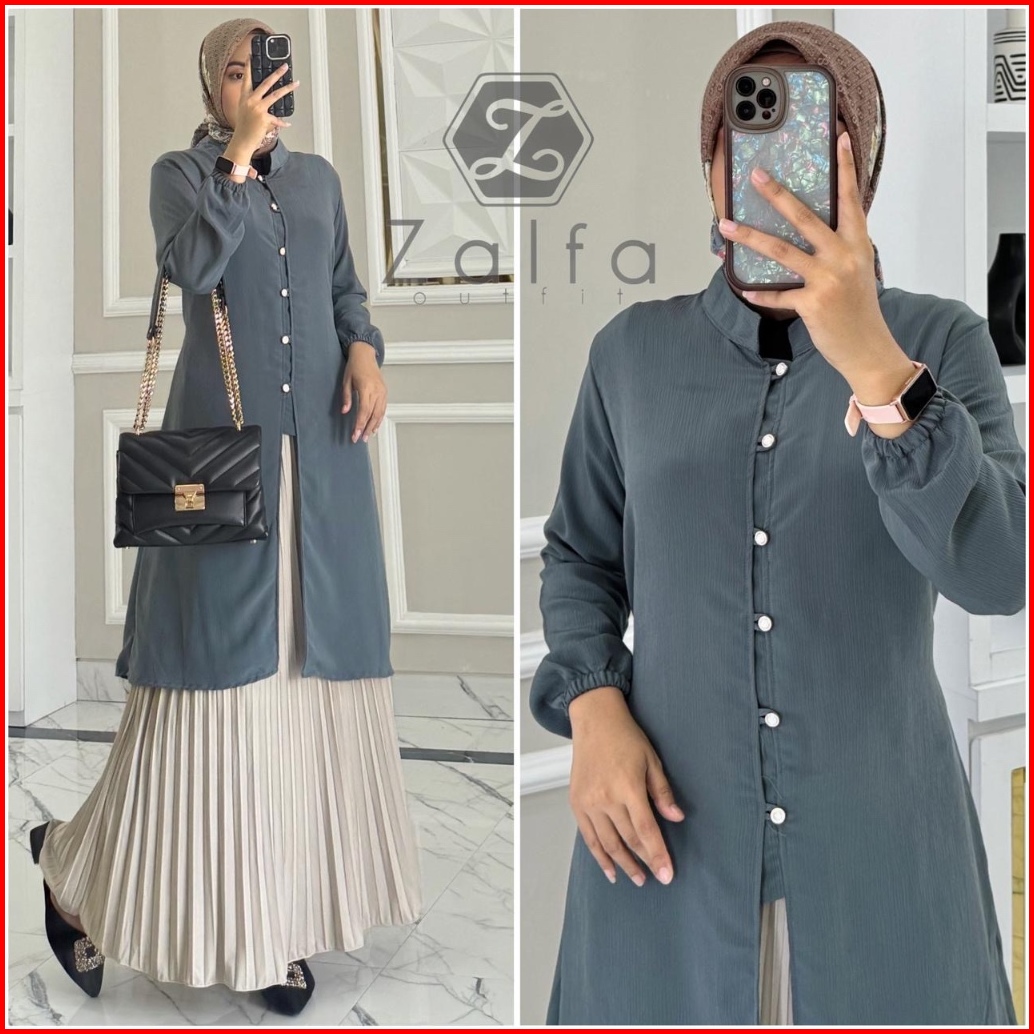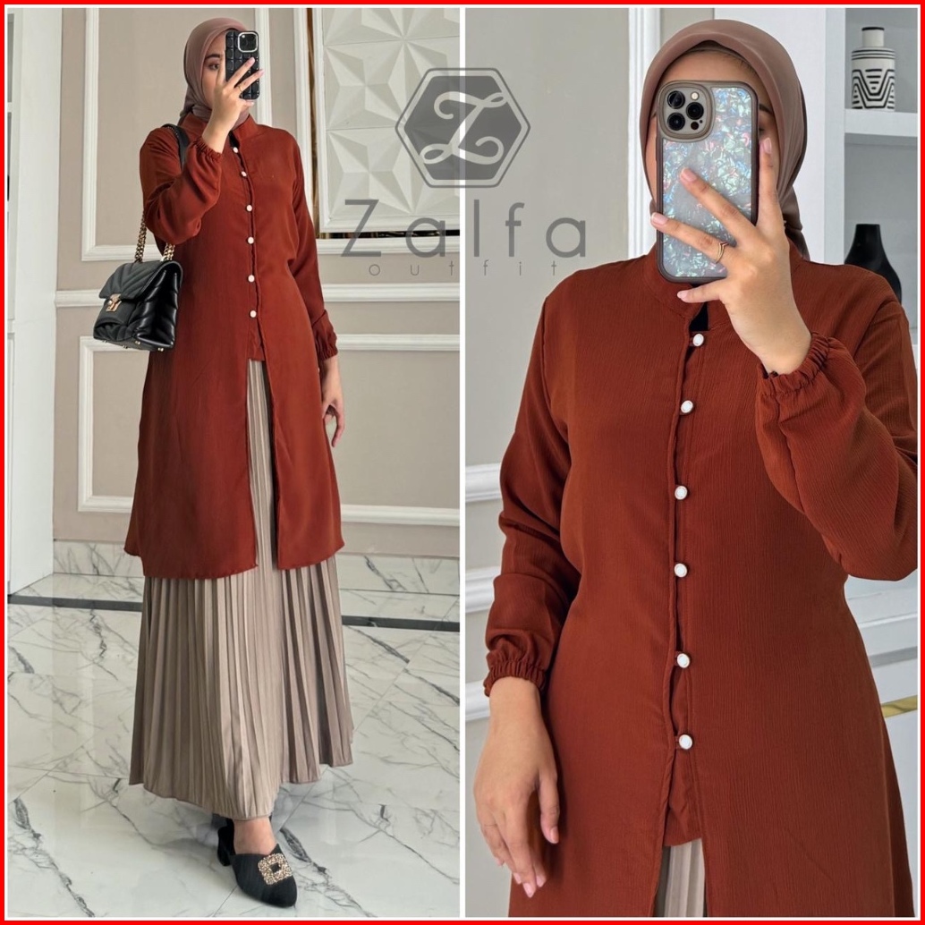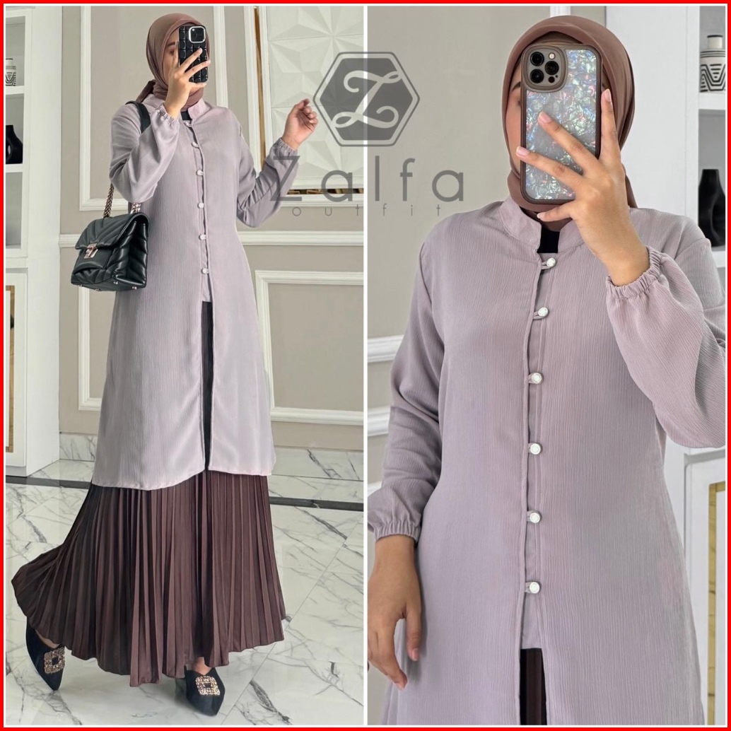 Selina Tunik By Zalfa Outfit Atasan Tunik Wanita Polos Kancing Mutiara