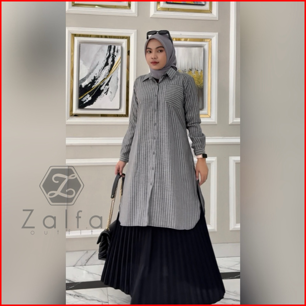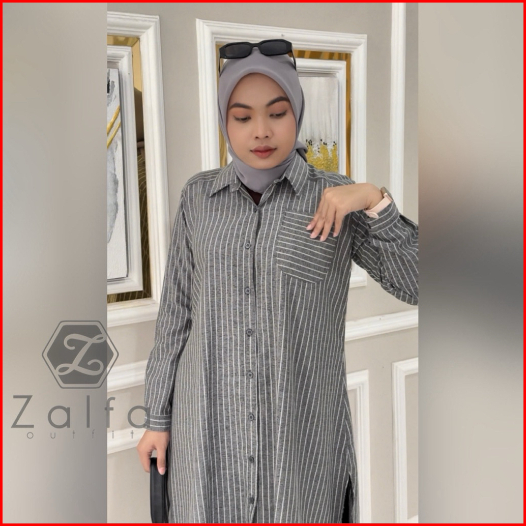 Pamela Tunik By Zalfa Outfit Atasan Wanita Tunik Salur Katun Poplin Saku Depan