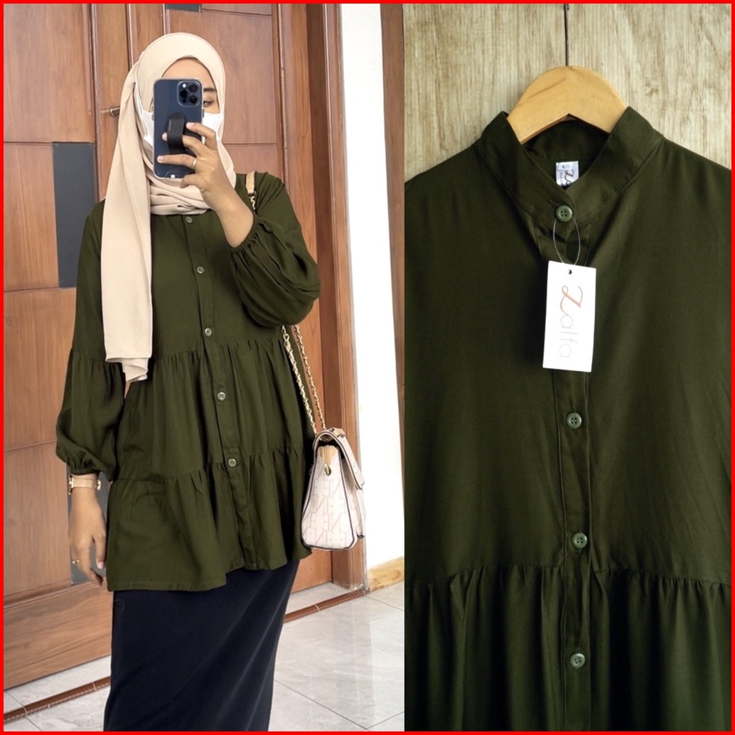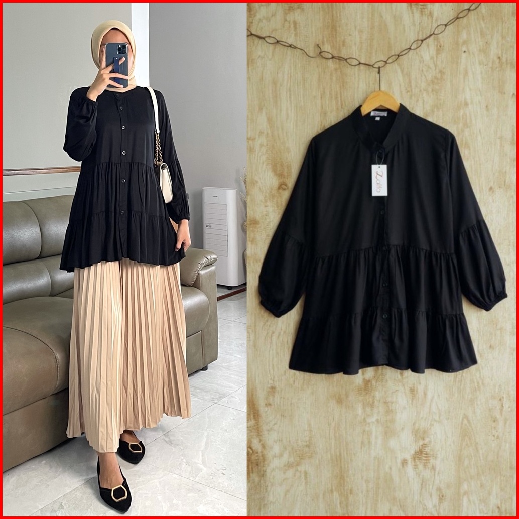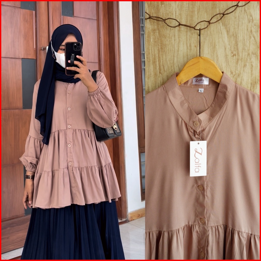 Nova Blouse By Zalfa Outfit Baju Atasan Wanita Muslim Blouse Kerja Kuliah Basic Polos Rayon Twill Premium Lengan Panjang