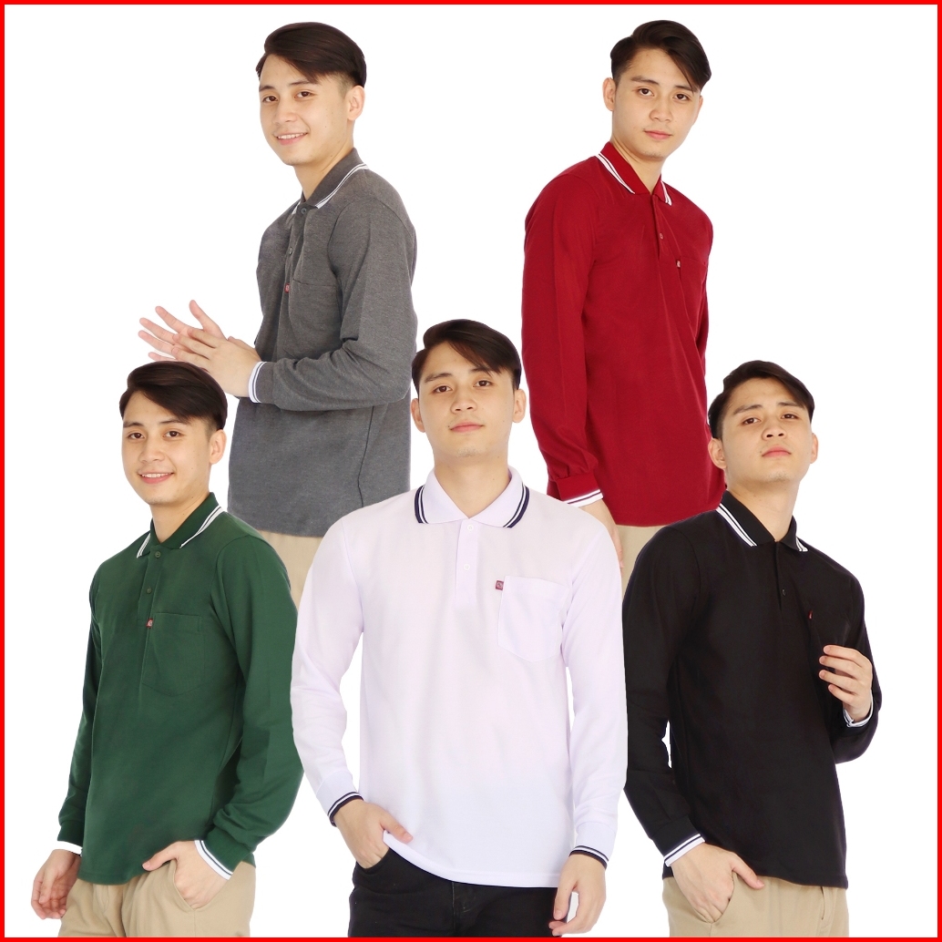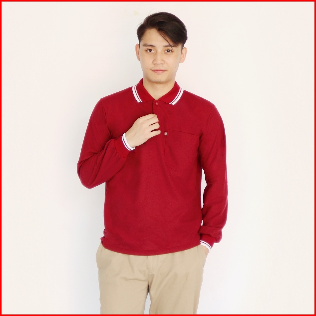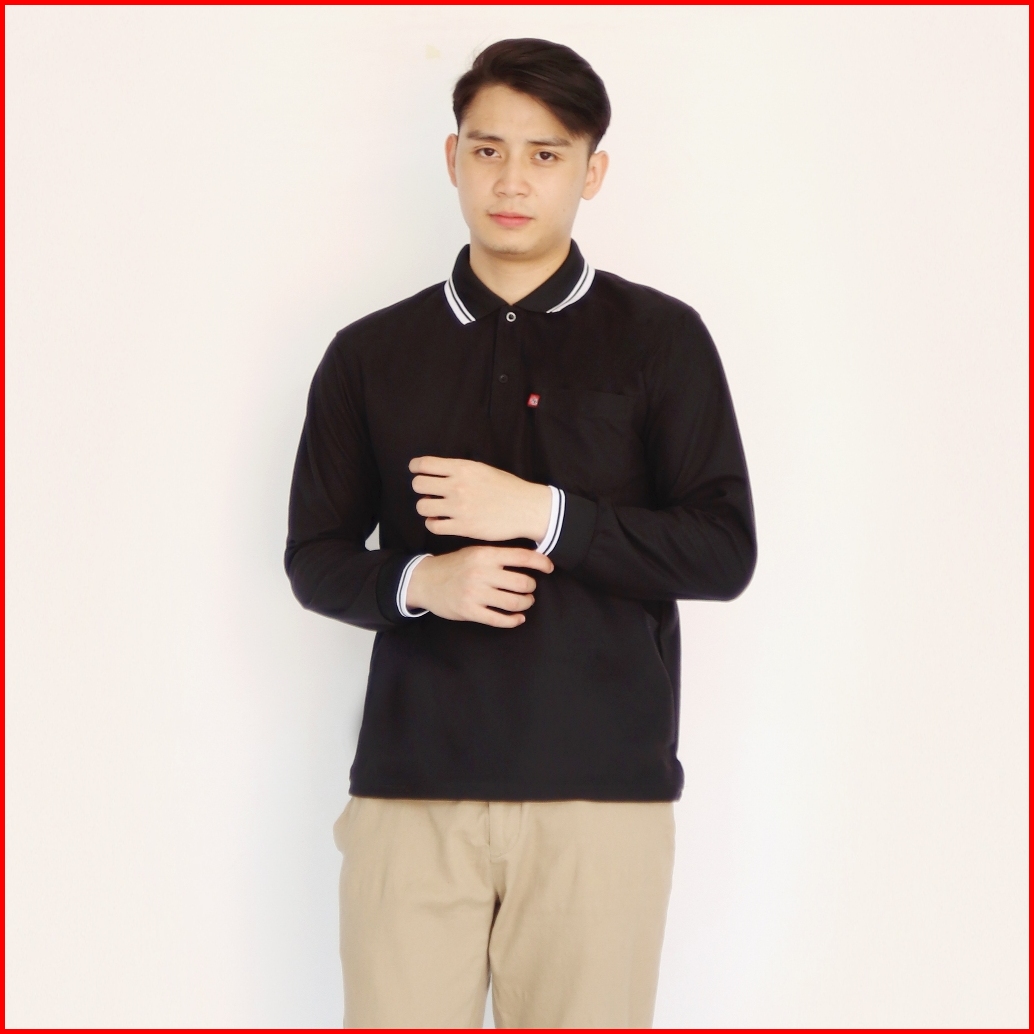 Kaospolos - Polo Shirt Pria Saku Lengan Panjang Kaos Seragam Kerah Polos Saku Pria