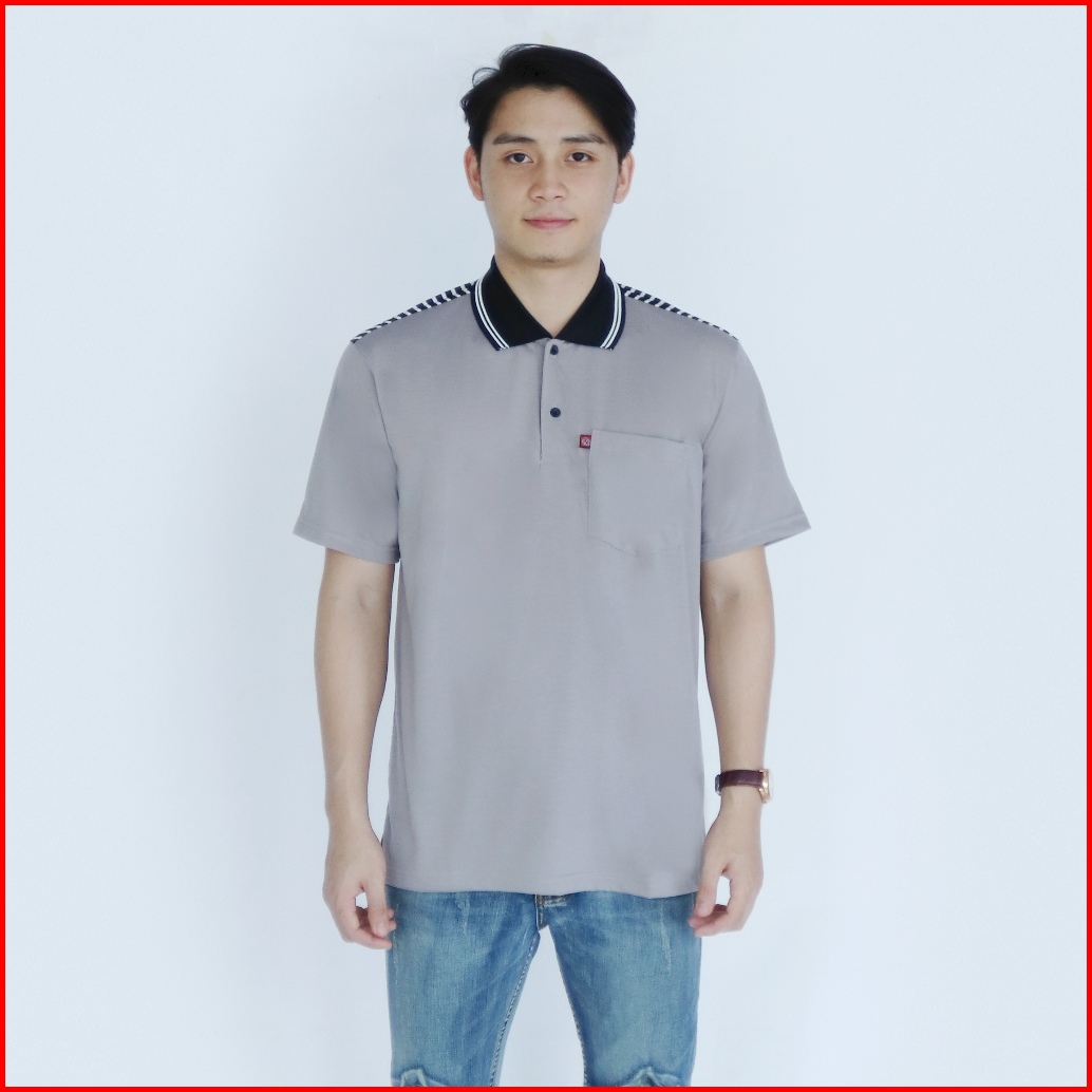 Kaospolos - Kaos Kerah Pria Kombinasi Pundak Dewasa Saku Lengan Pendek Polo Distro Atasan Cowok