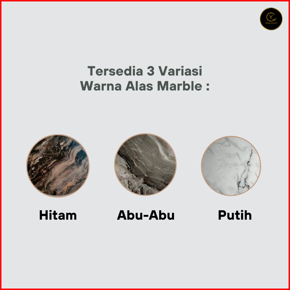 Marble hitam, Marble putih, Marble abu-abu, Kayu natural