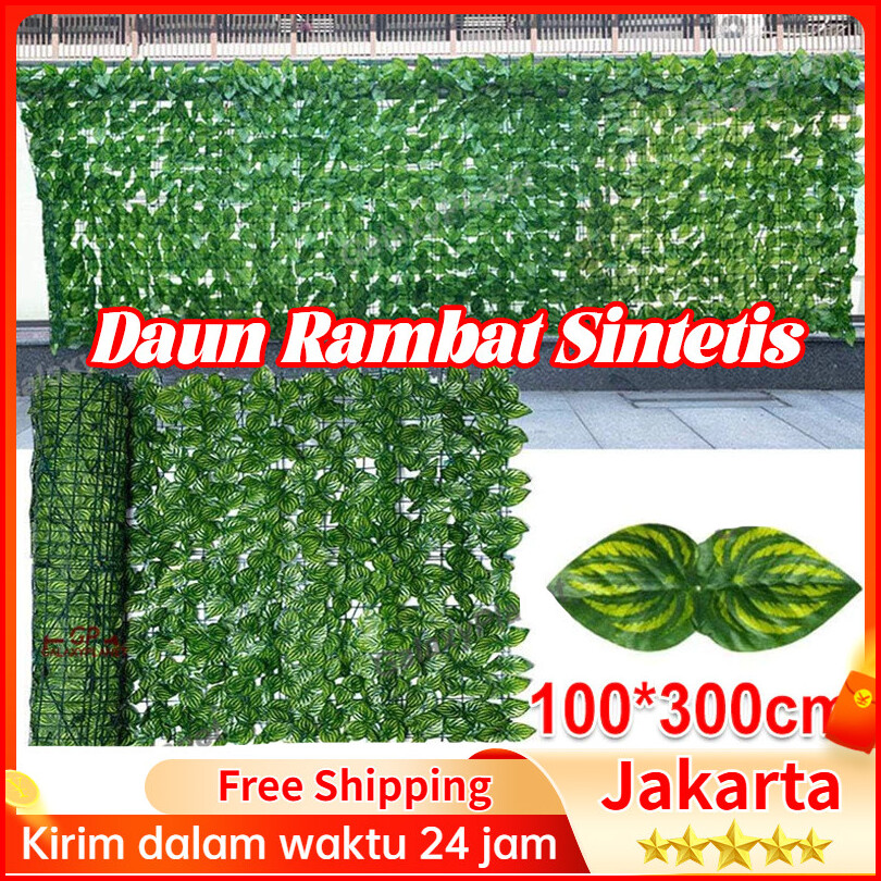 Daun Rambat Sintetis 1m 3m Plastik Dinding Rumput Buatan Daun Pagar Roll Artificial Hias Tanaman Hias Sintetis Daun Hias