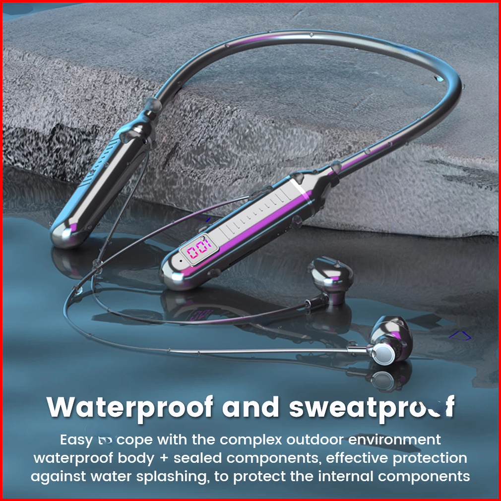 2024 New Wireless Earphones 5.3 Neckband Headphones Gaming Led Display Stereo Sports Headset Halter Waterproof Magnetic