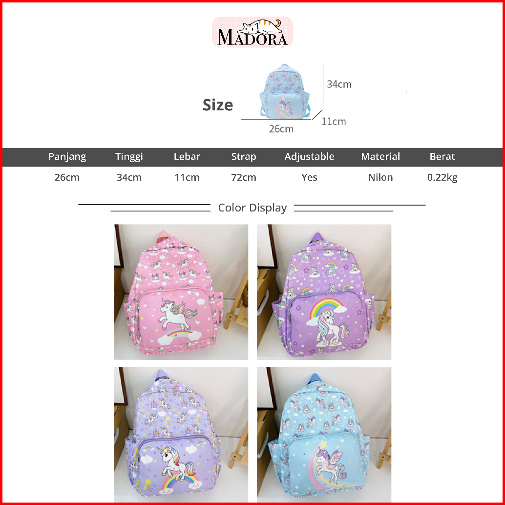 Madora Tas Ransel Anak Paud Tk Sd Karakter Kartun Unicorn Lucu Adjustable Strap