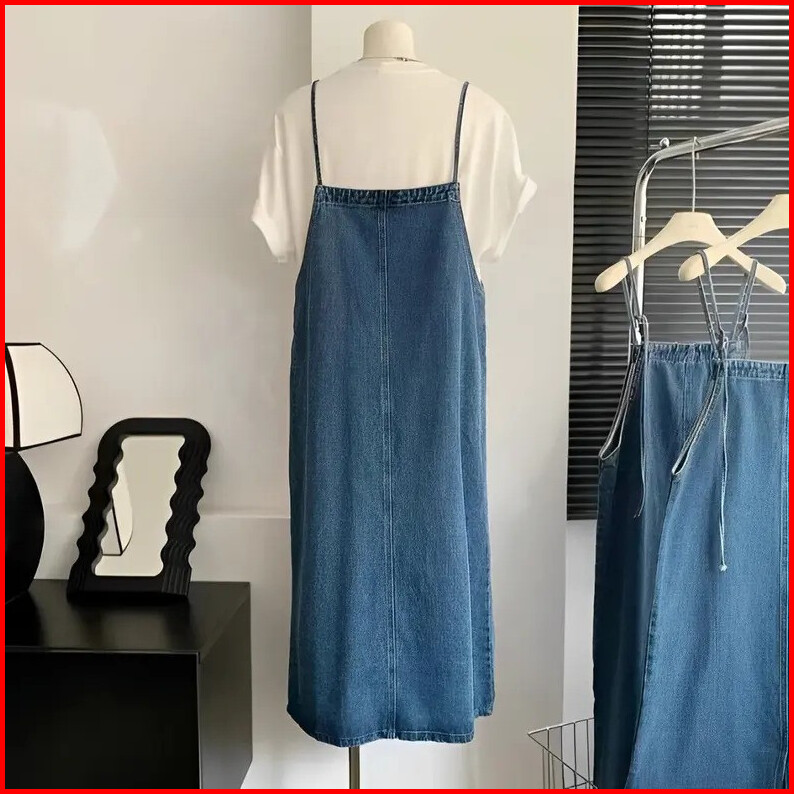 Overall Jeans Wanita Dress Korean Style Skirtmidi Long Rok Denim Panjang