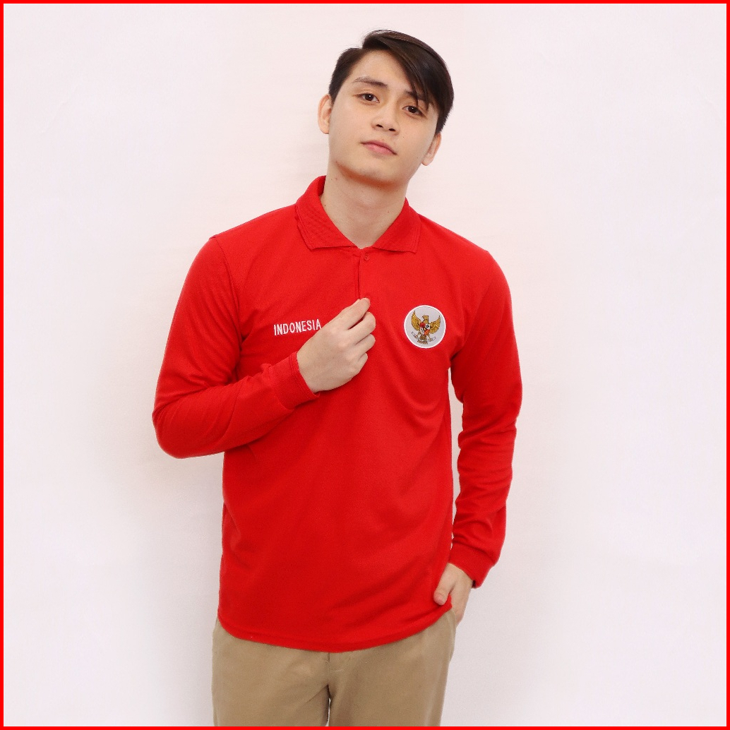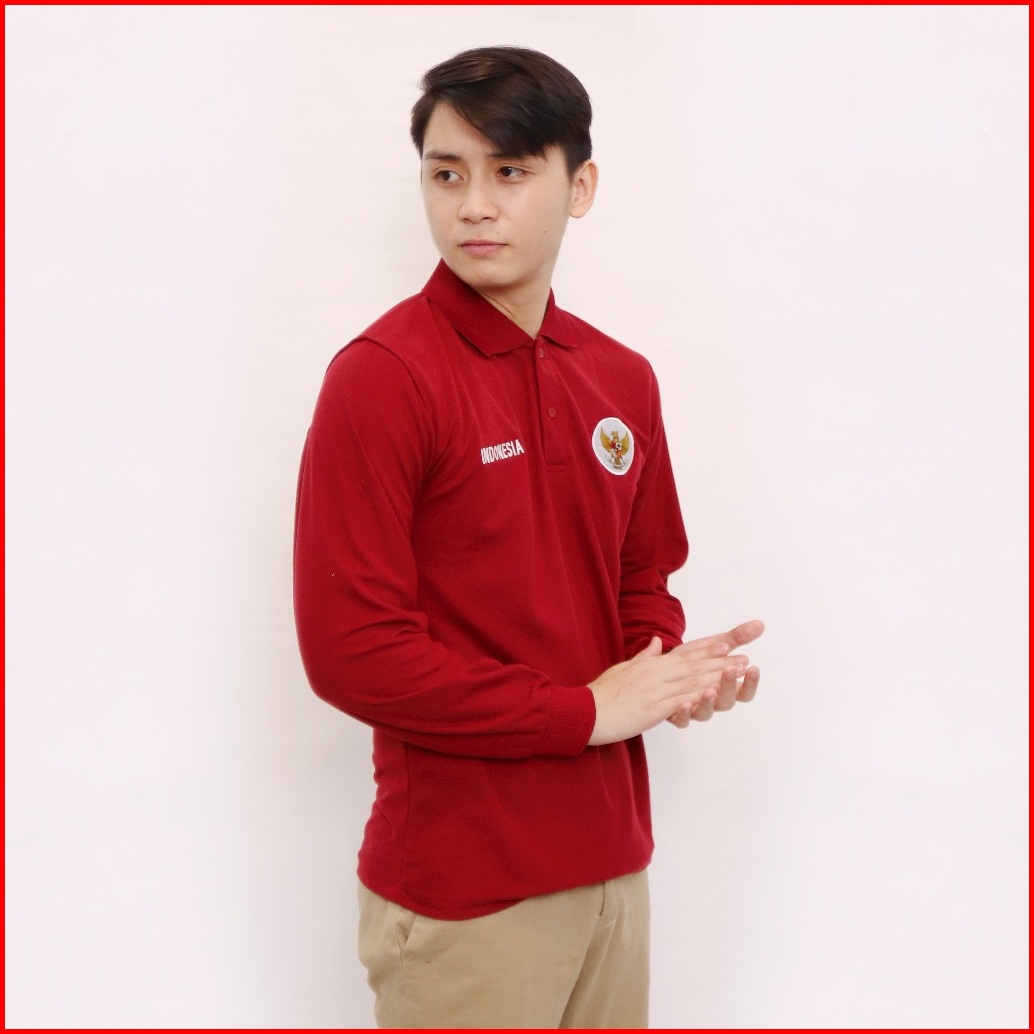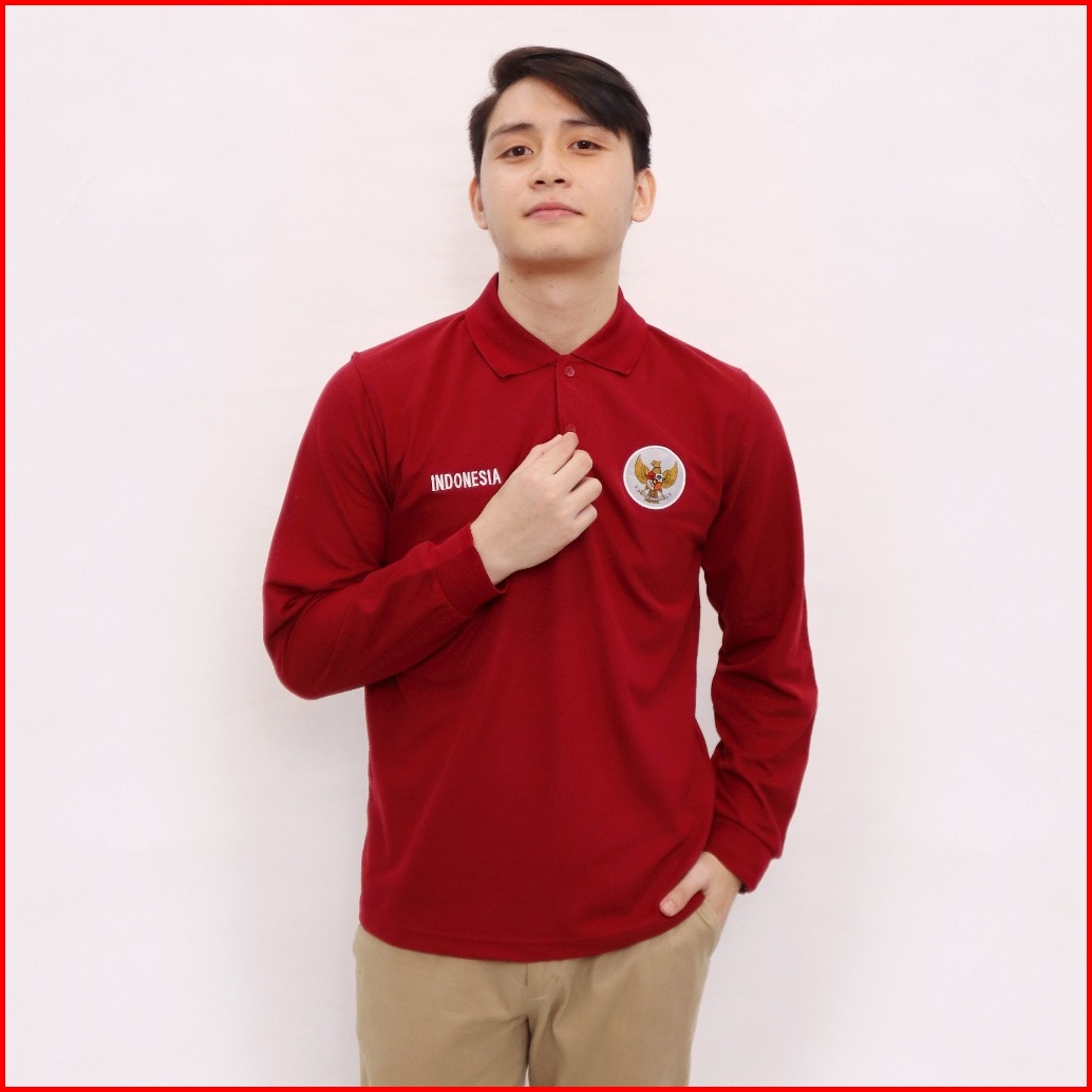 Kaospolos - Kaos Kerah Pria Lengan Panjang Kaos Polo Shirt Distro Bordir Logo Garuda Indonesia