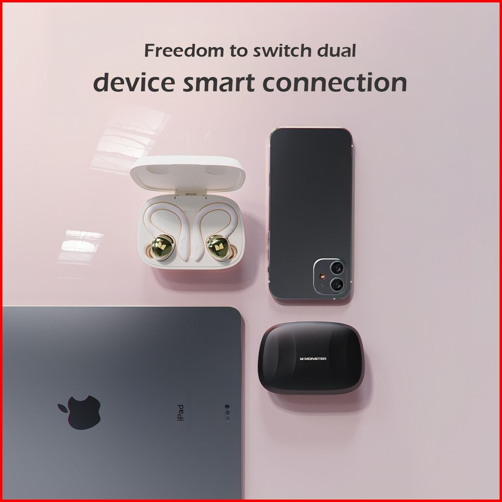 Free Sarung Jempol Gaming Monster Mqt47 Hybrid Close Ear Earhook Tws True Wireless Stereo Bluetooth V5.4