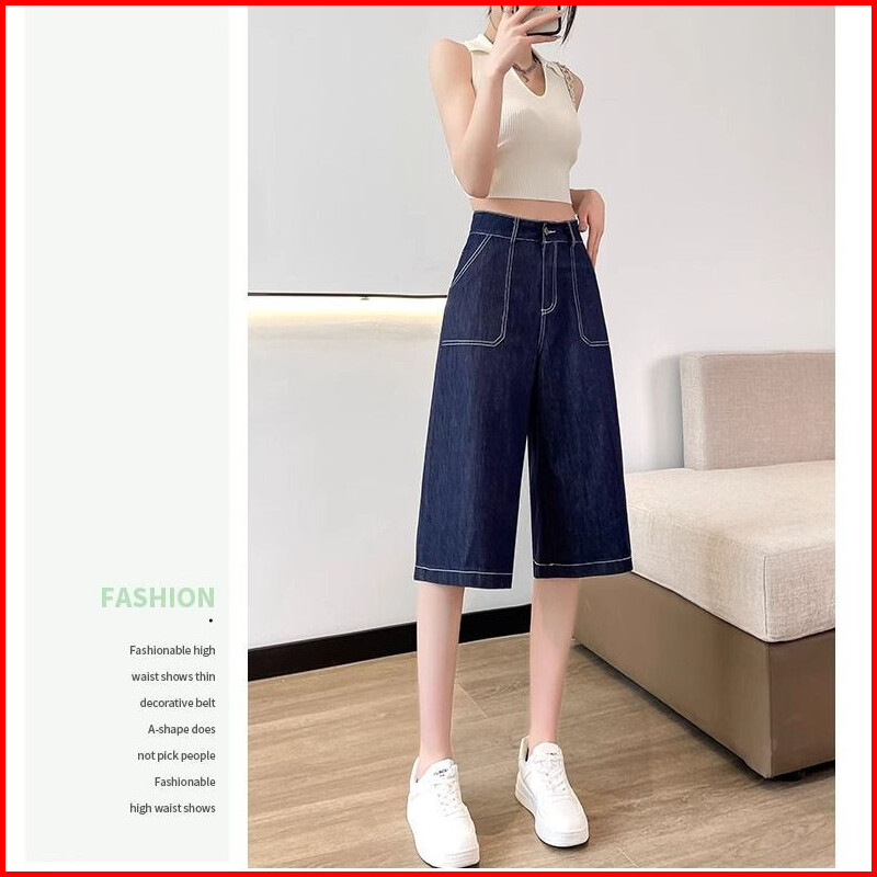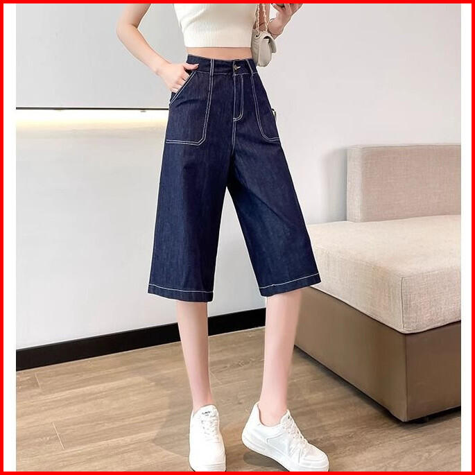 Celana Pendek Jins Wanita Dengan Pinggang Tinggi Dan Potongan Longgar