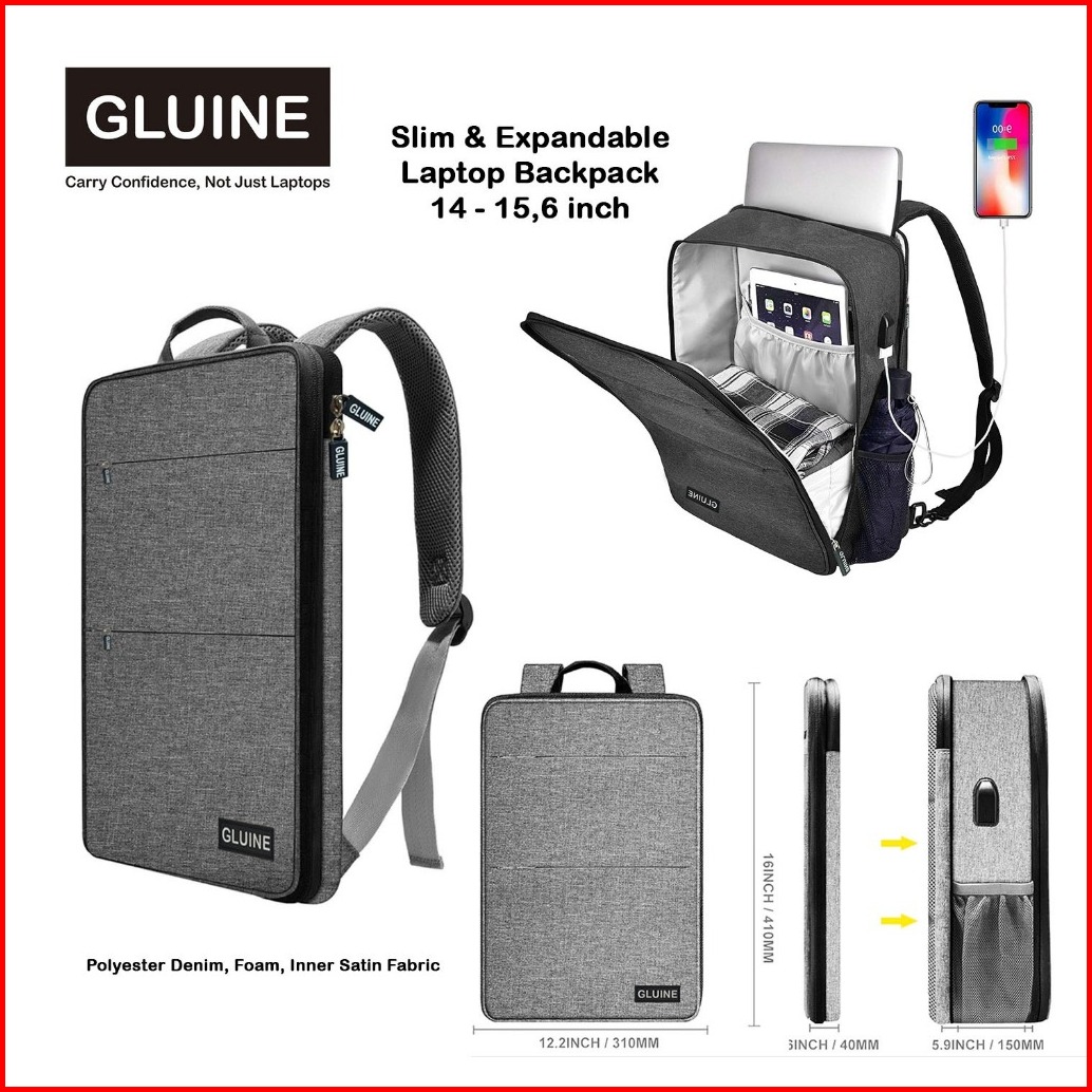Gluine 168 Tas Laptop Ramping Dapat Diperluas Slim Expandable Laptop Backpack With Usb Port Size 14 - 15.6 Inch