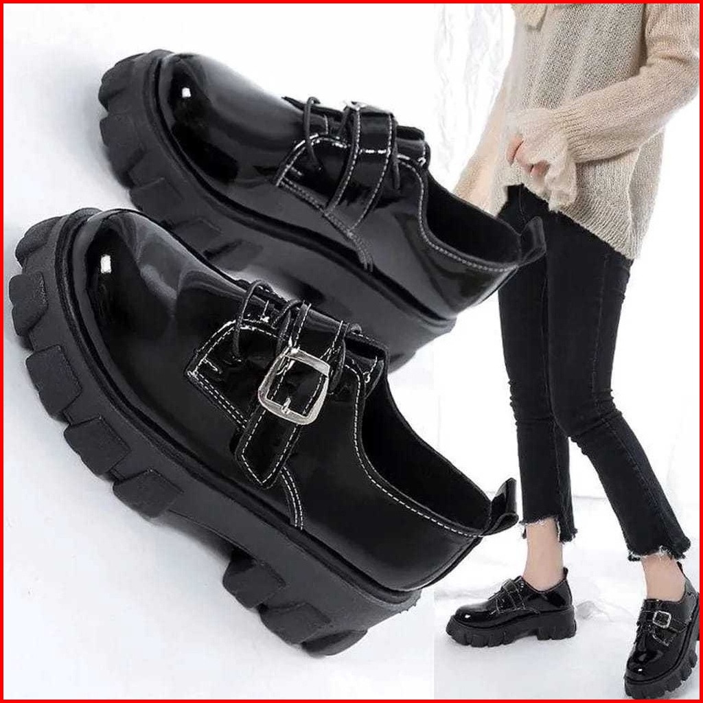 Sr Sepatu Docmart Gesper Slip On Wanita Sepatu Oxford Hitam Wanita Sepatu Kerja Wanita Casual Shoes