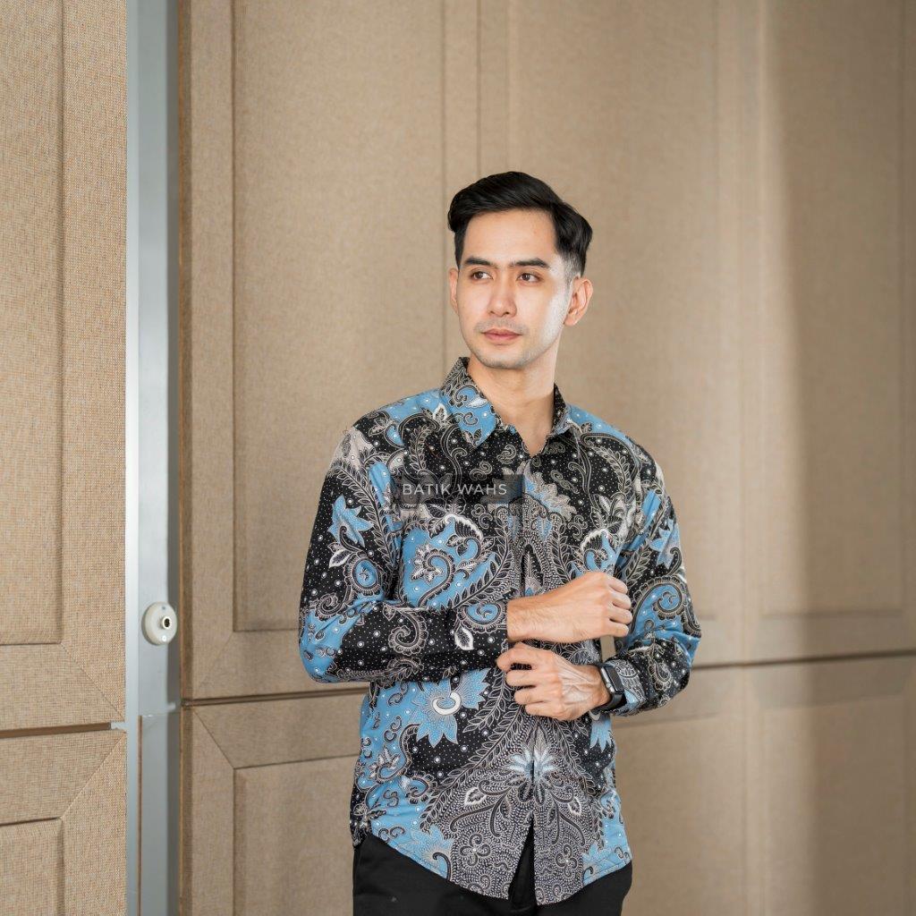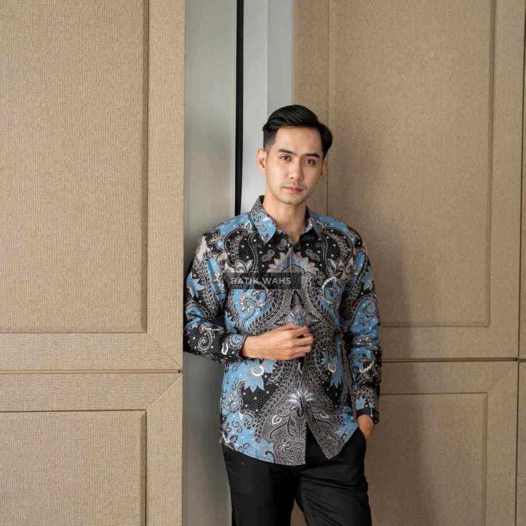 SATYA BIRU MUDA KEMEJA BATIK SOLO LAPIS FURING KWALITAS PREMIUM