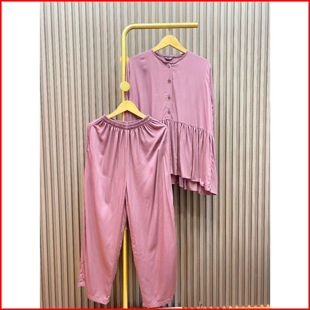 Oneset Shelly Rayon Twill Adem Tebal Set Wanita Polos Busui Kancing