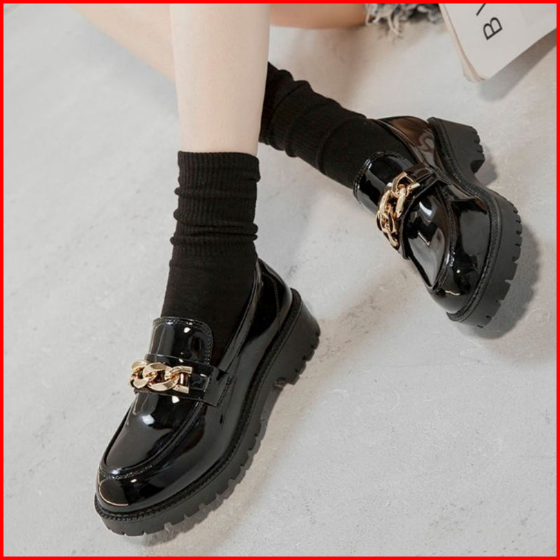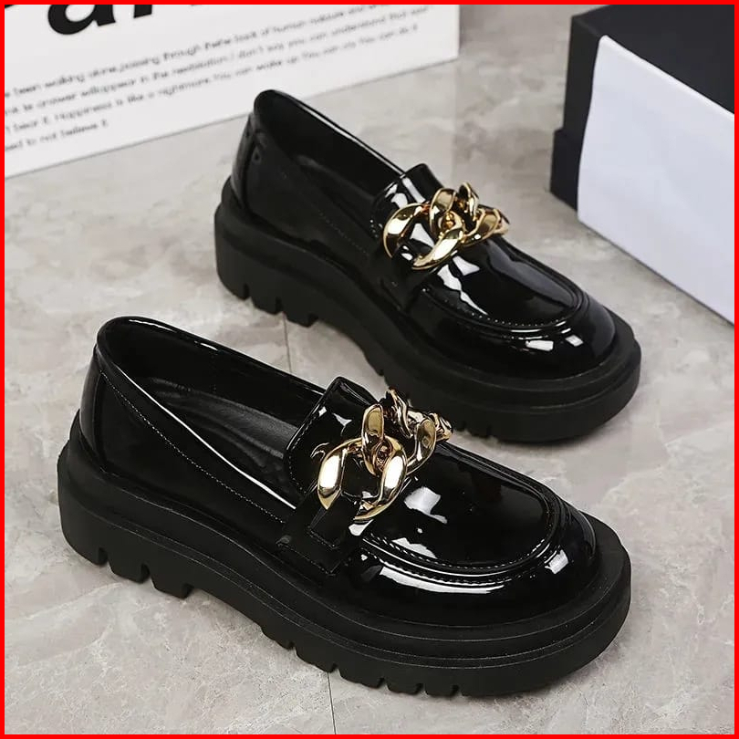 Sepatu Docmart Wanita Model Rantai Sepatu Loafers Wanita Glossy