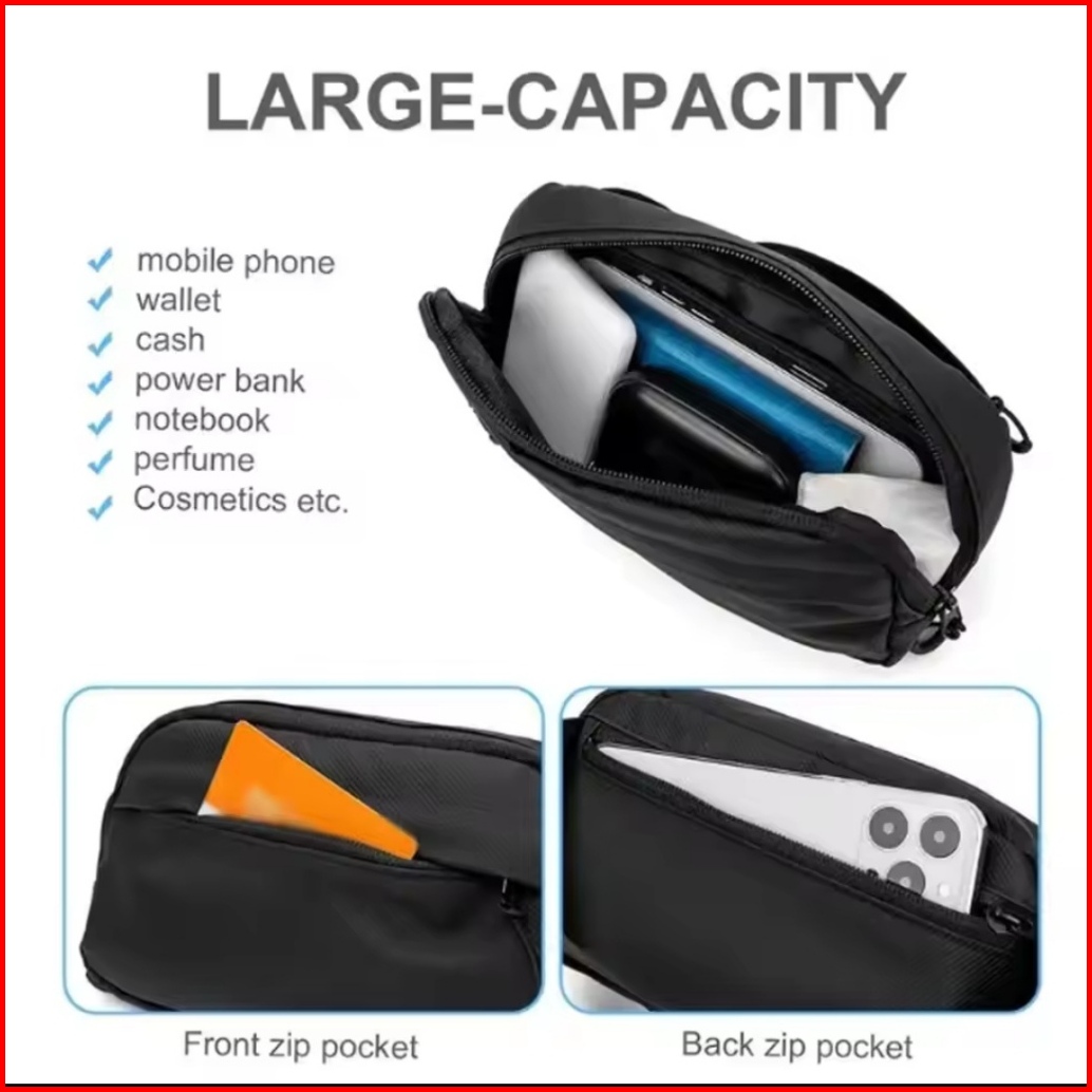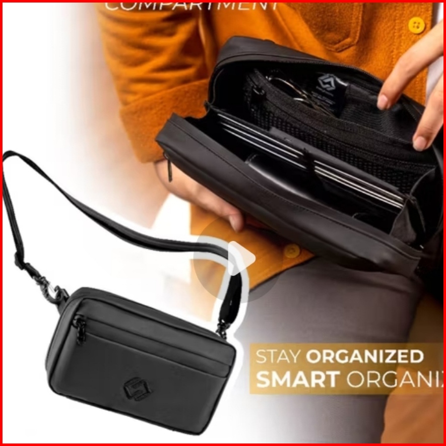 Handbag Hitam Tas Slempang Cowok Anti Air Handbag Black Waterproof Tas Pria Multifungsi Clutch Bag