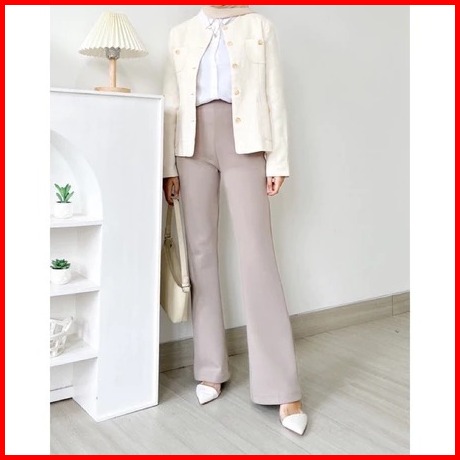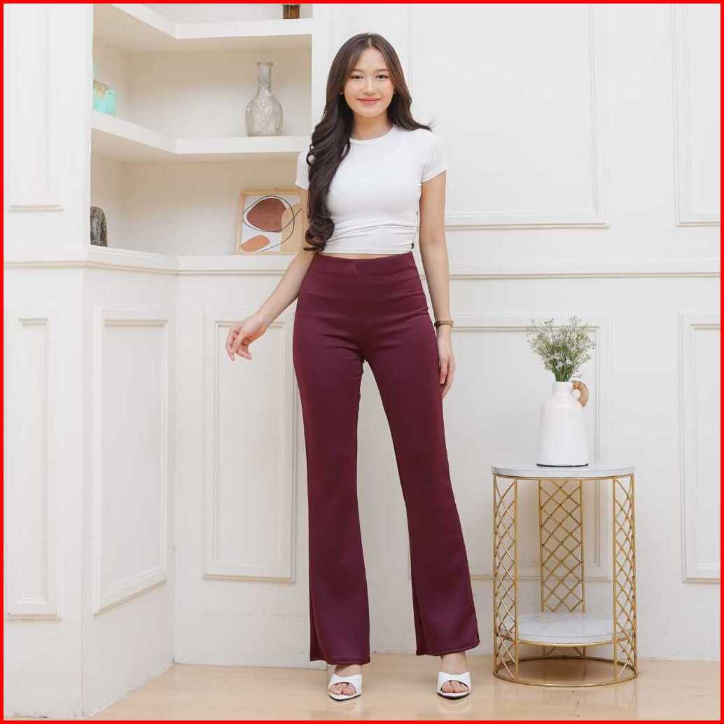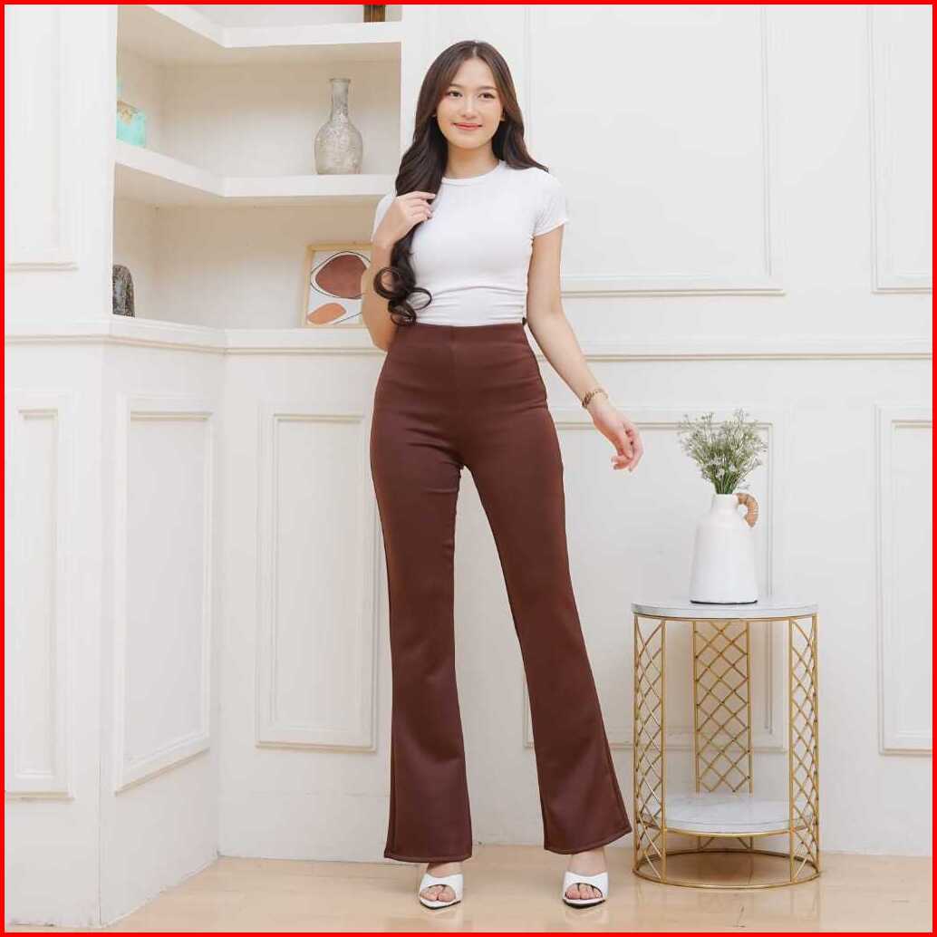 Ficca.id Flare Pants Cutbray Scuba Pinggang Highwaist Bahan Strech Melar Elastis