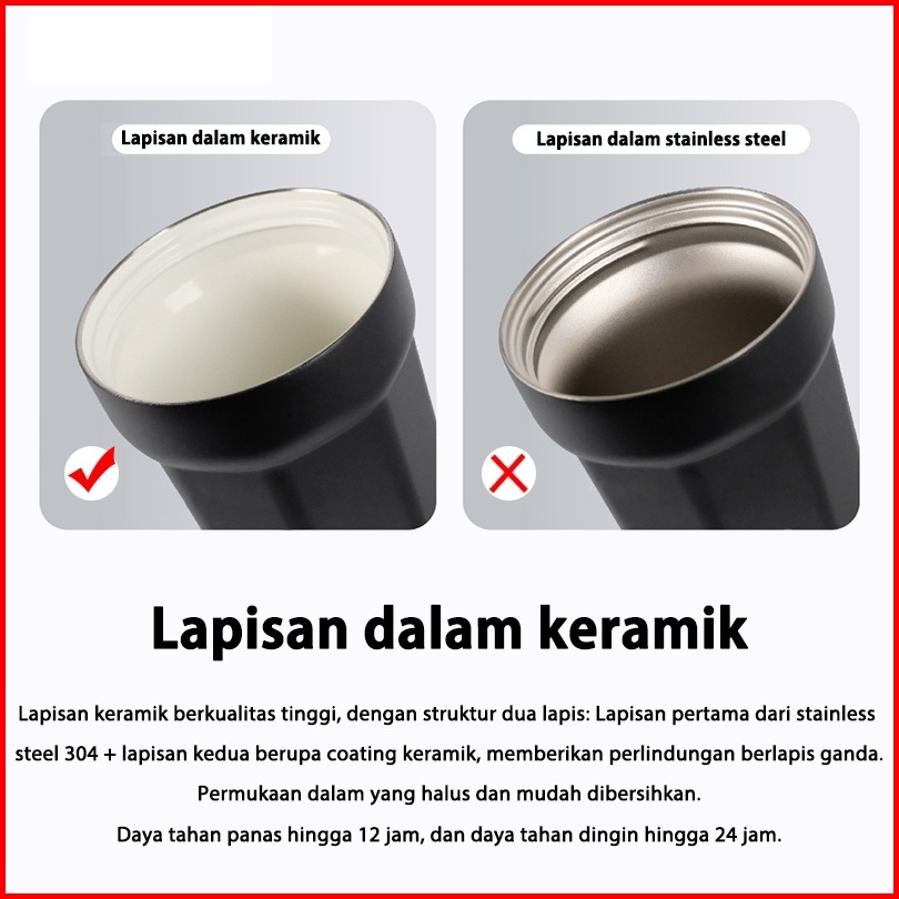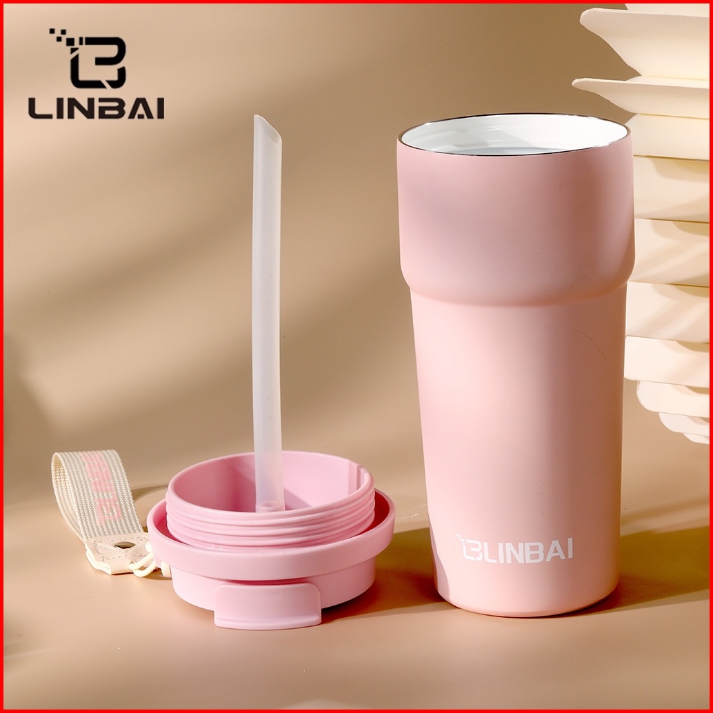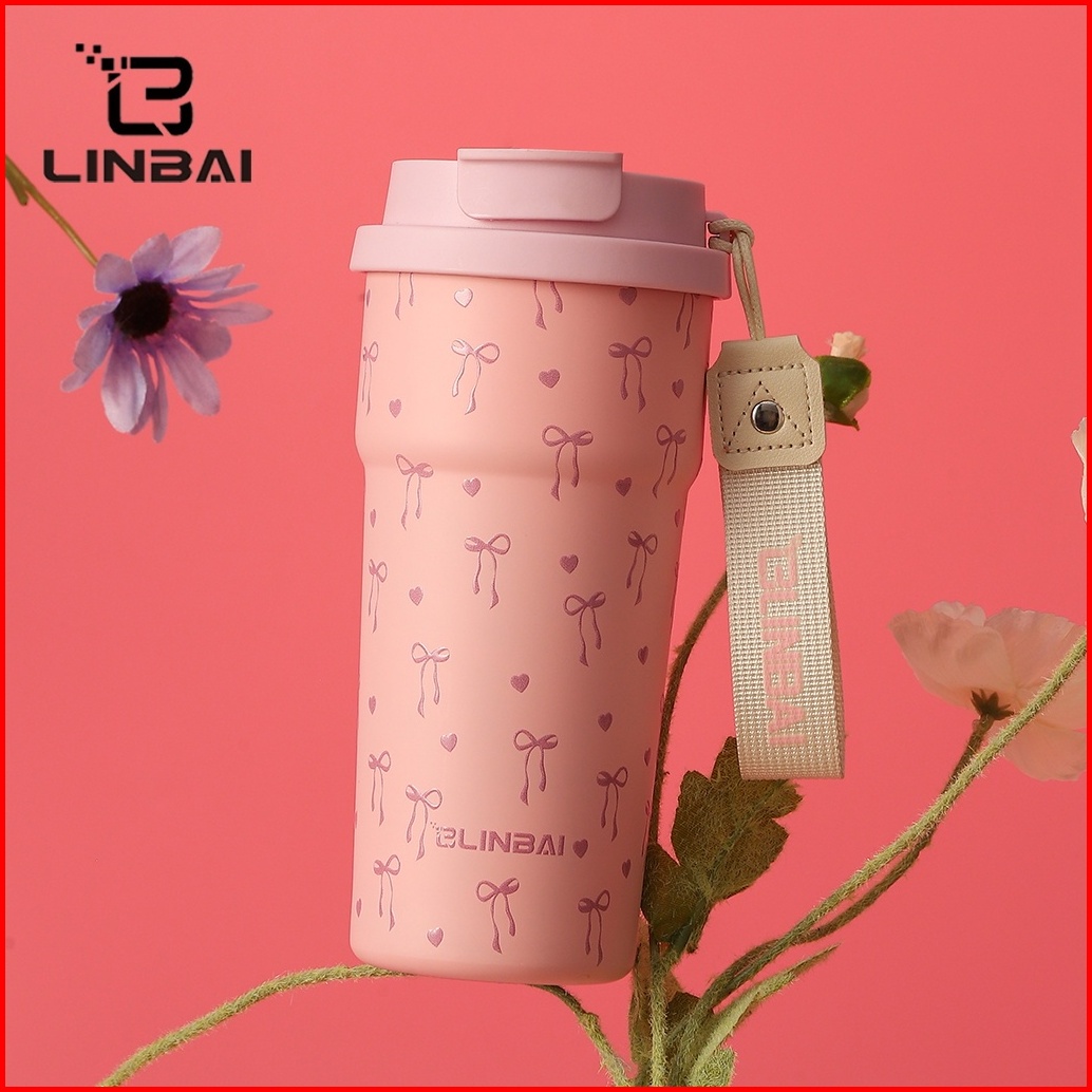 Linbai Flask 17oz Bow Tie Print Ceramic Liner Coffee Mug Vacuum Insulated Water Bottle With Straw 500ml Tumbler Hot And