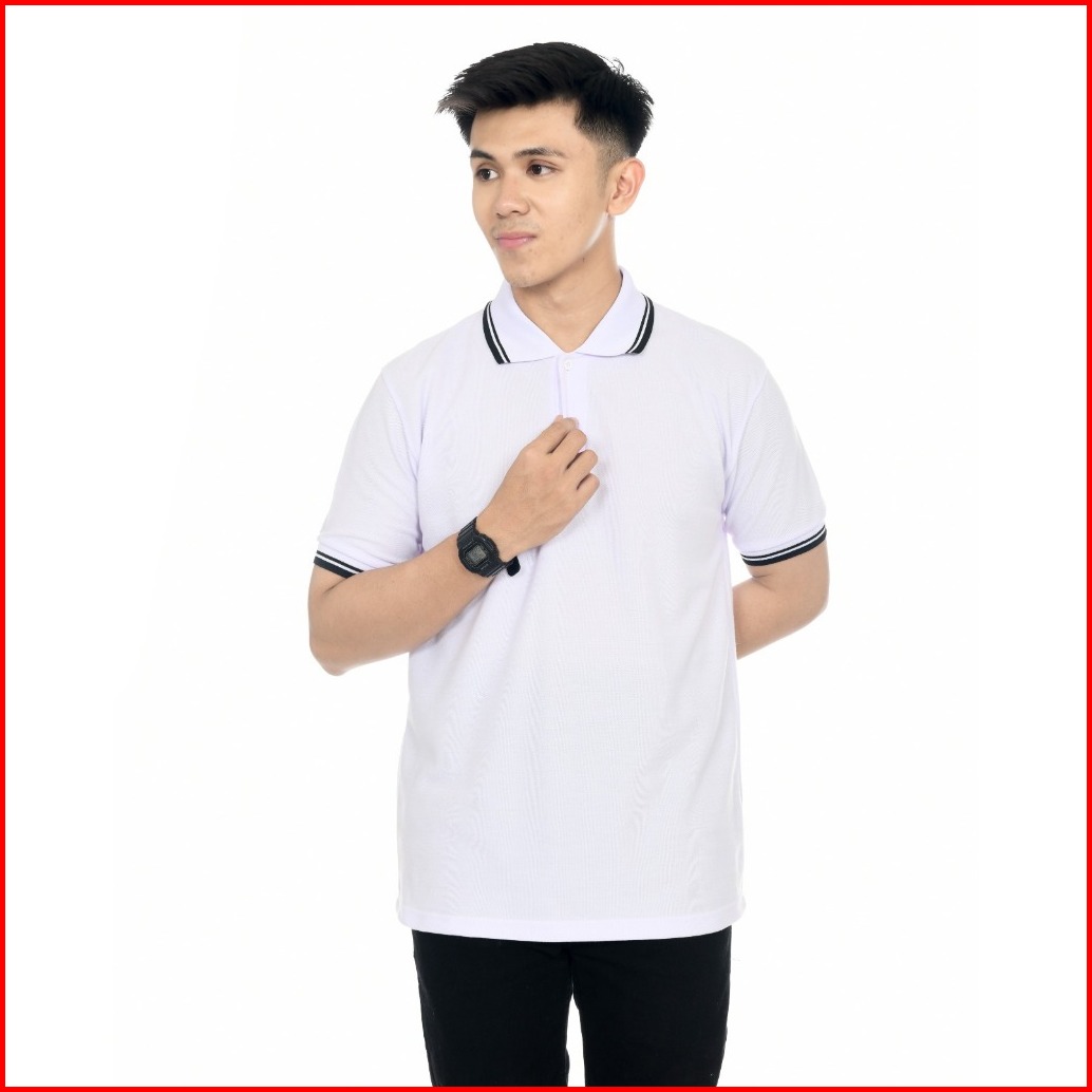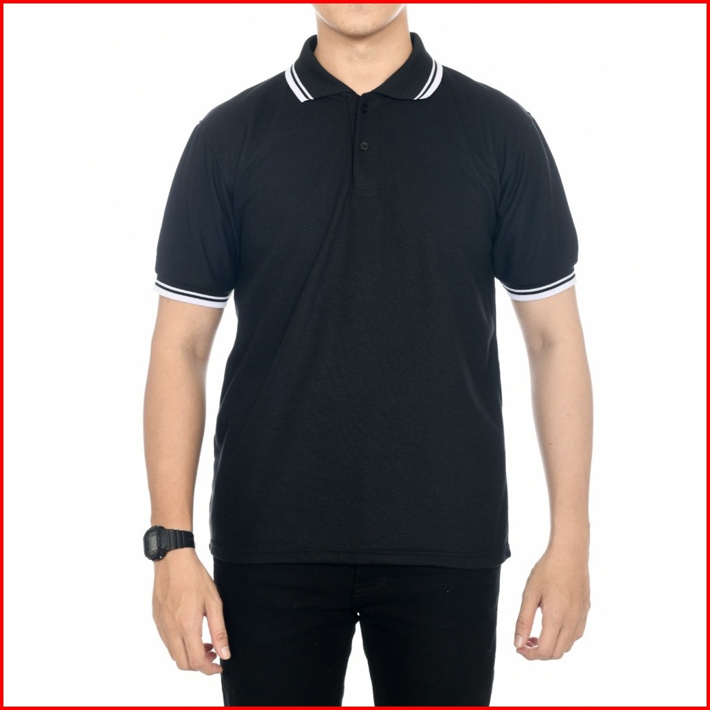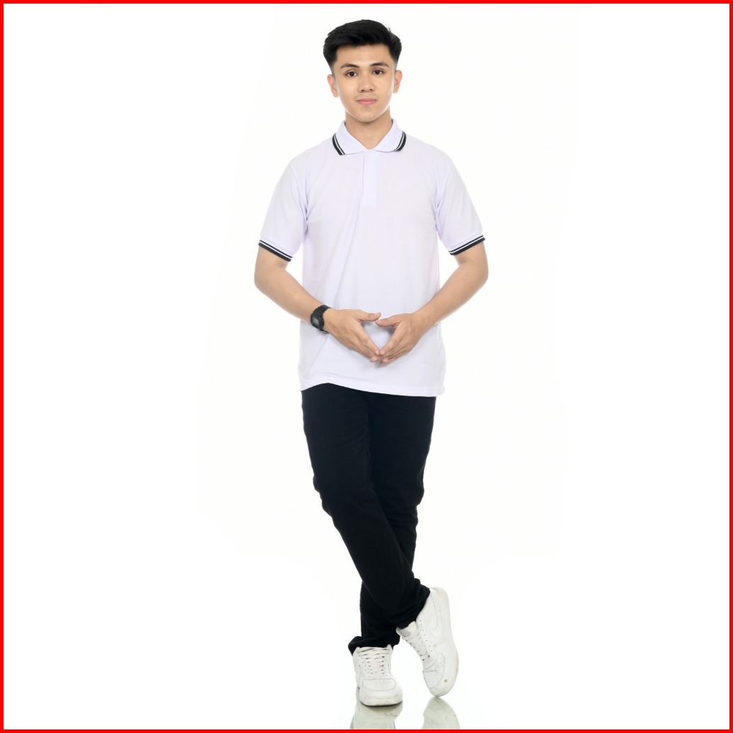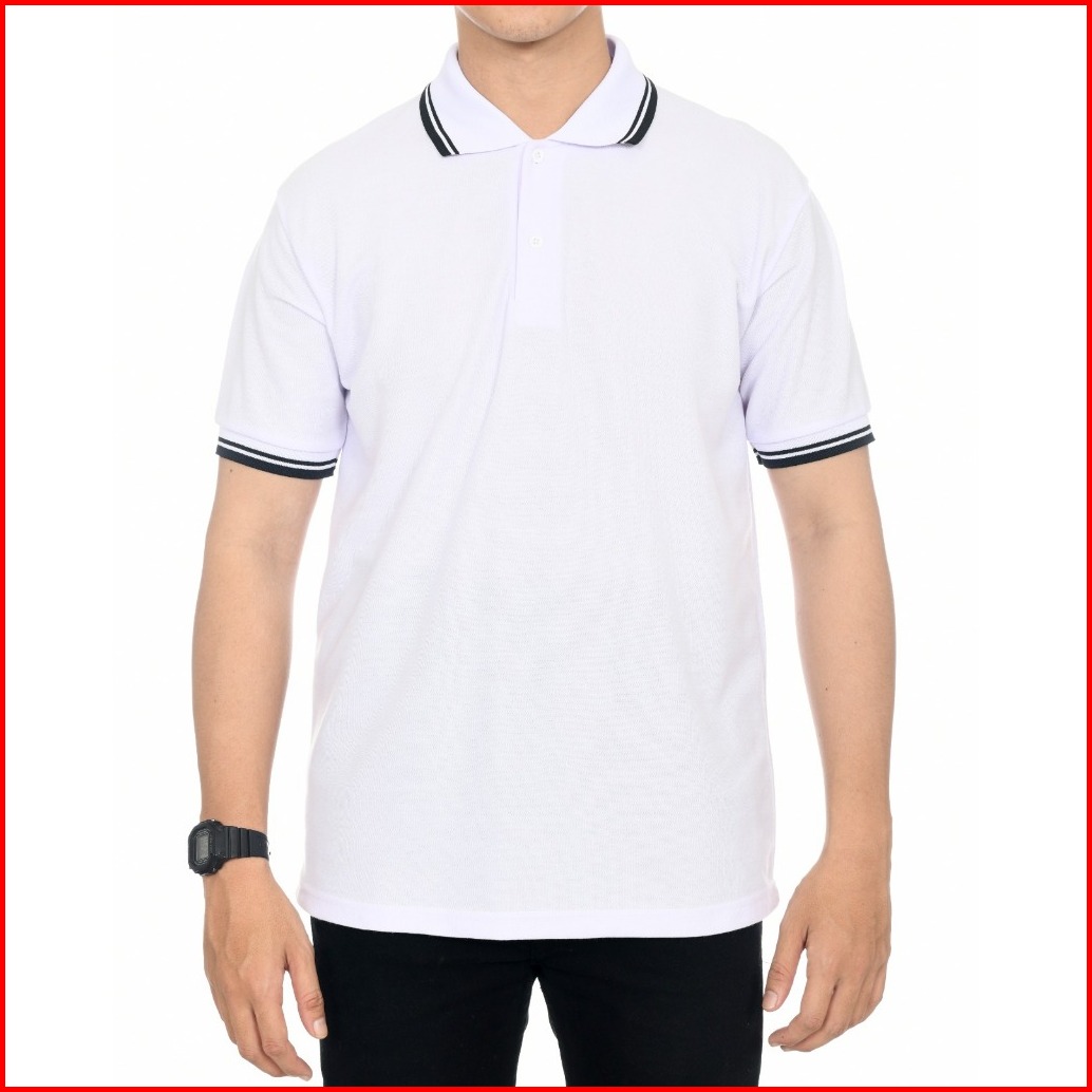 Kaos Polo Pria Kerah Putih List Hitam Kaos Polo Lengan Pendek