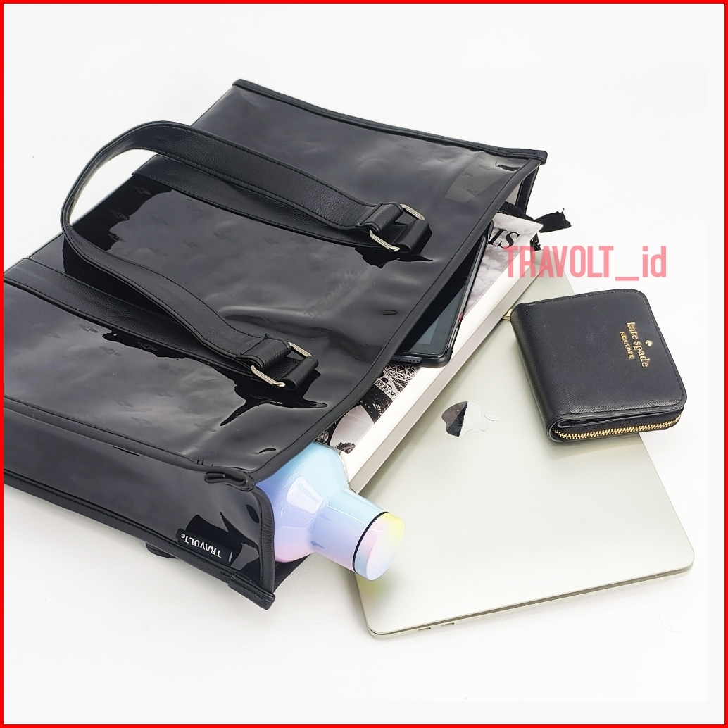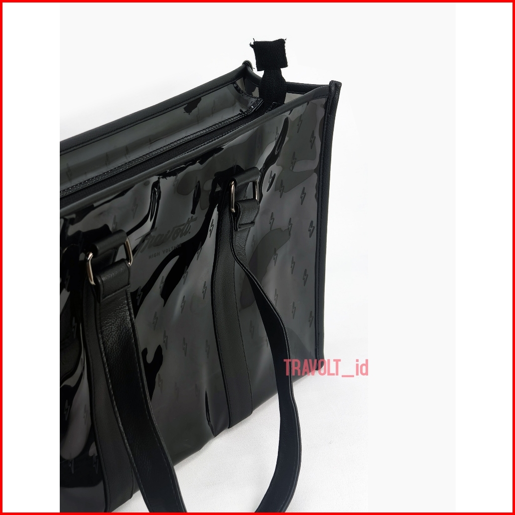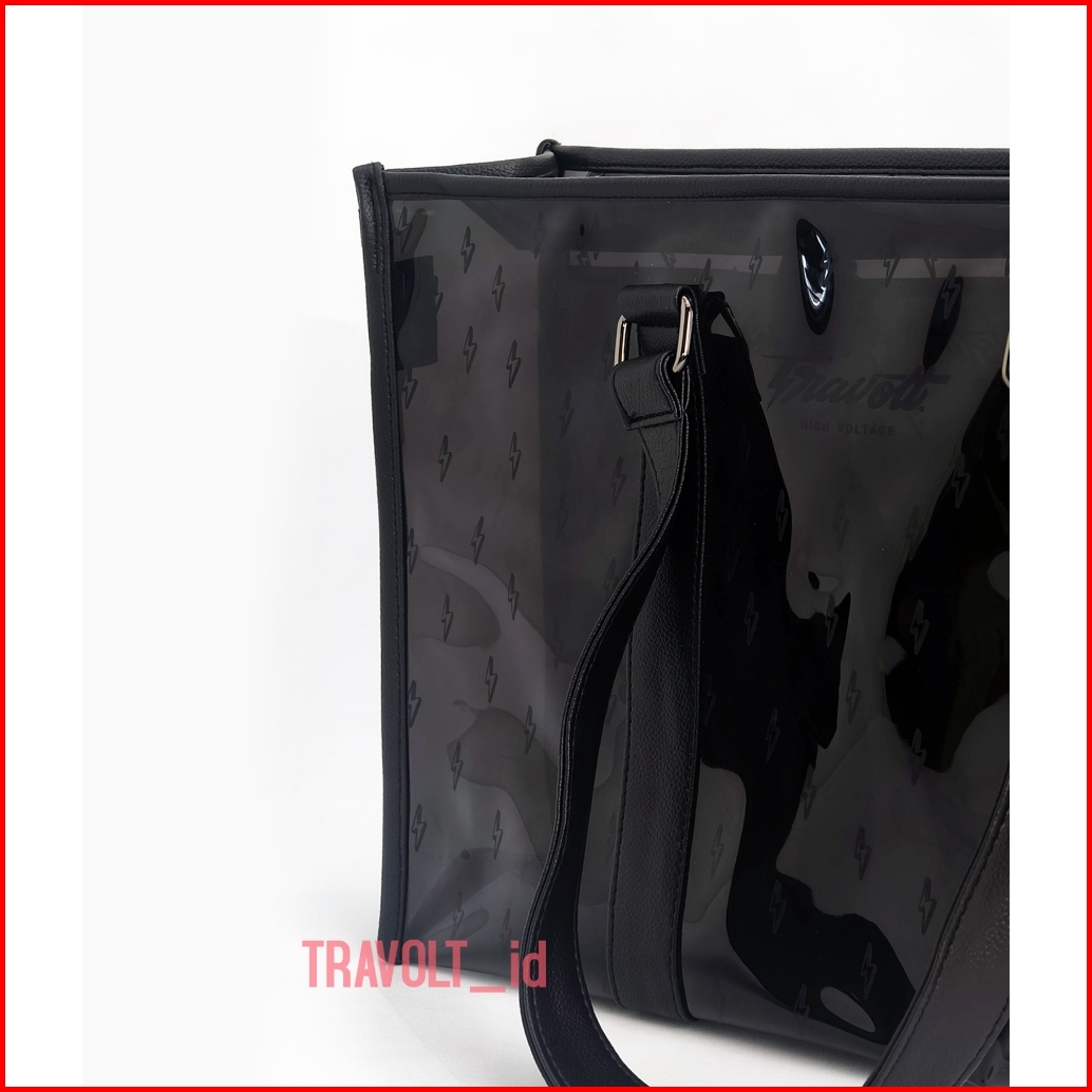 Totebag Hitam Transparant Tebal - Grain - Tas Mika Pvc Hitam - Kulit - Travolt