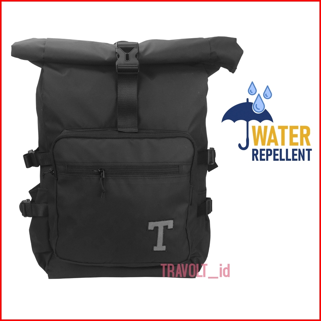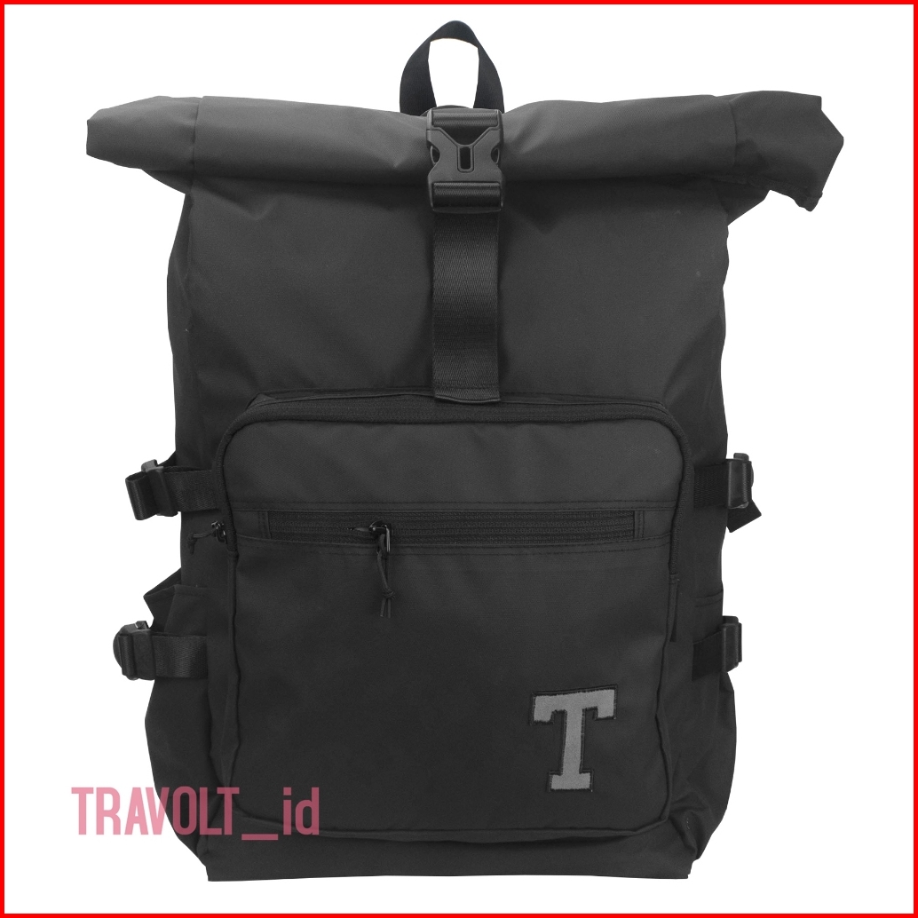 Backpack Rolltop - Travolt - Tas Ransel Gulung Sekolah - Anti Air - Waterproof - Laptop - Hitam