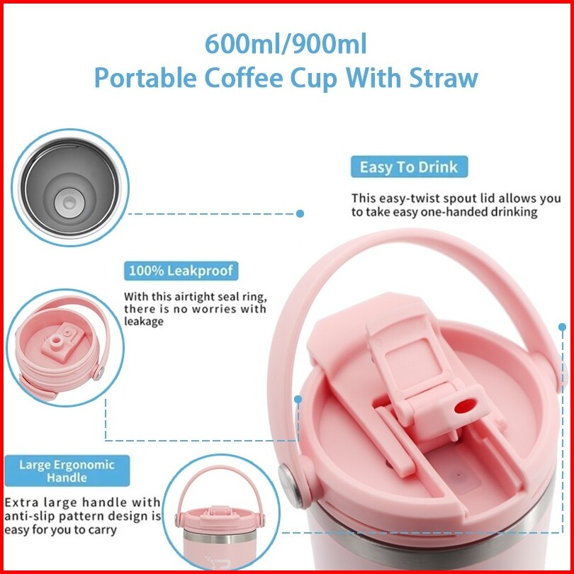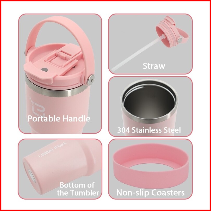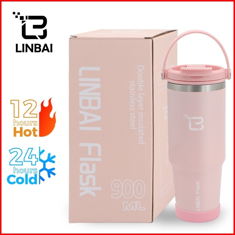 Linbai Flask 600 900ml Insulated Vacuum Tumbler With Silicone Boot Stainless Steel Water Bottle With Straw Hot And Cold
