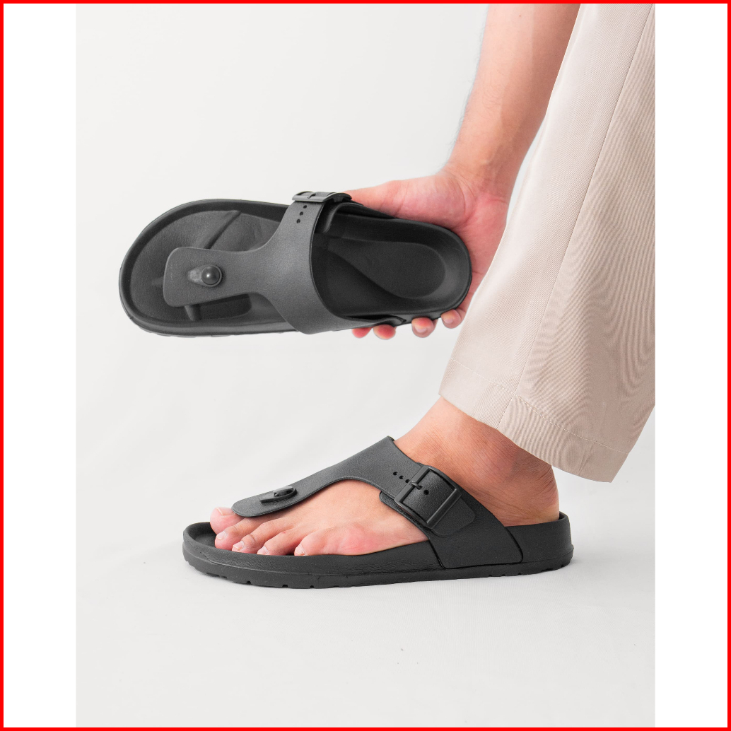 Oufy Sandal Jepit Grid Non Box Sandal Jepit Pria Wanita - Black