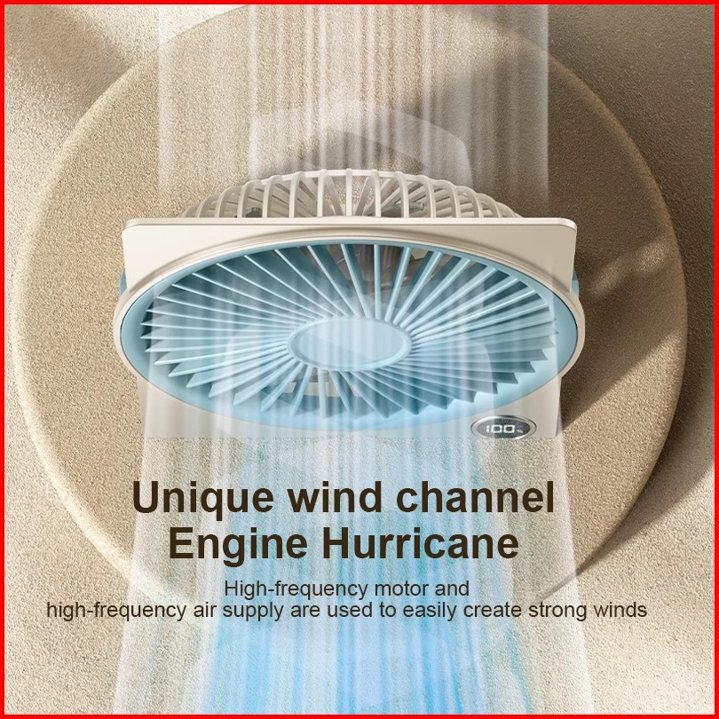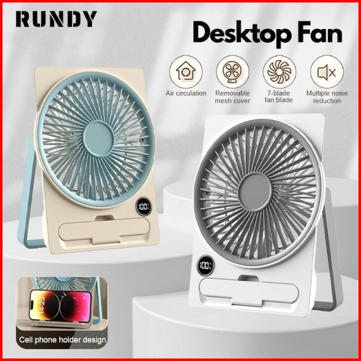 Rundycodkipas Angin Dekstop Portable Mini Usb 3000mah Kipas Meja Lipat 180 Led Display 5-speed Kipas Dengan Dudukan Pons