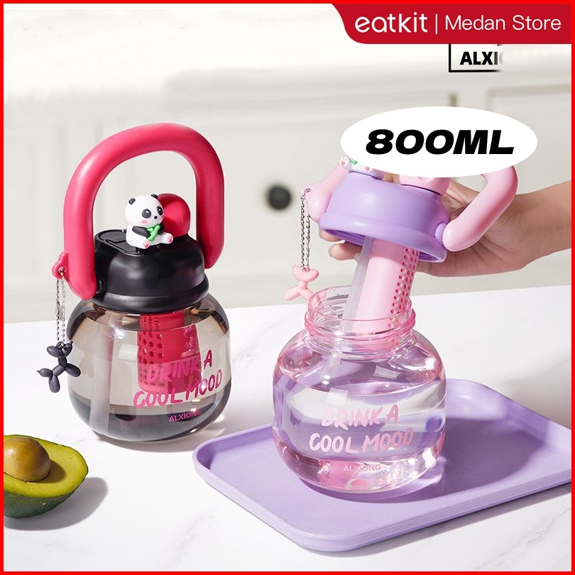 Medan Ready Stock Eatkit Botol Minum Transparan Karakter Lucu 800ml Snager Tumbler Infused Handle Linlin Tritan