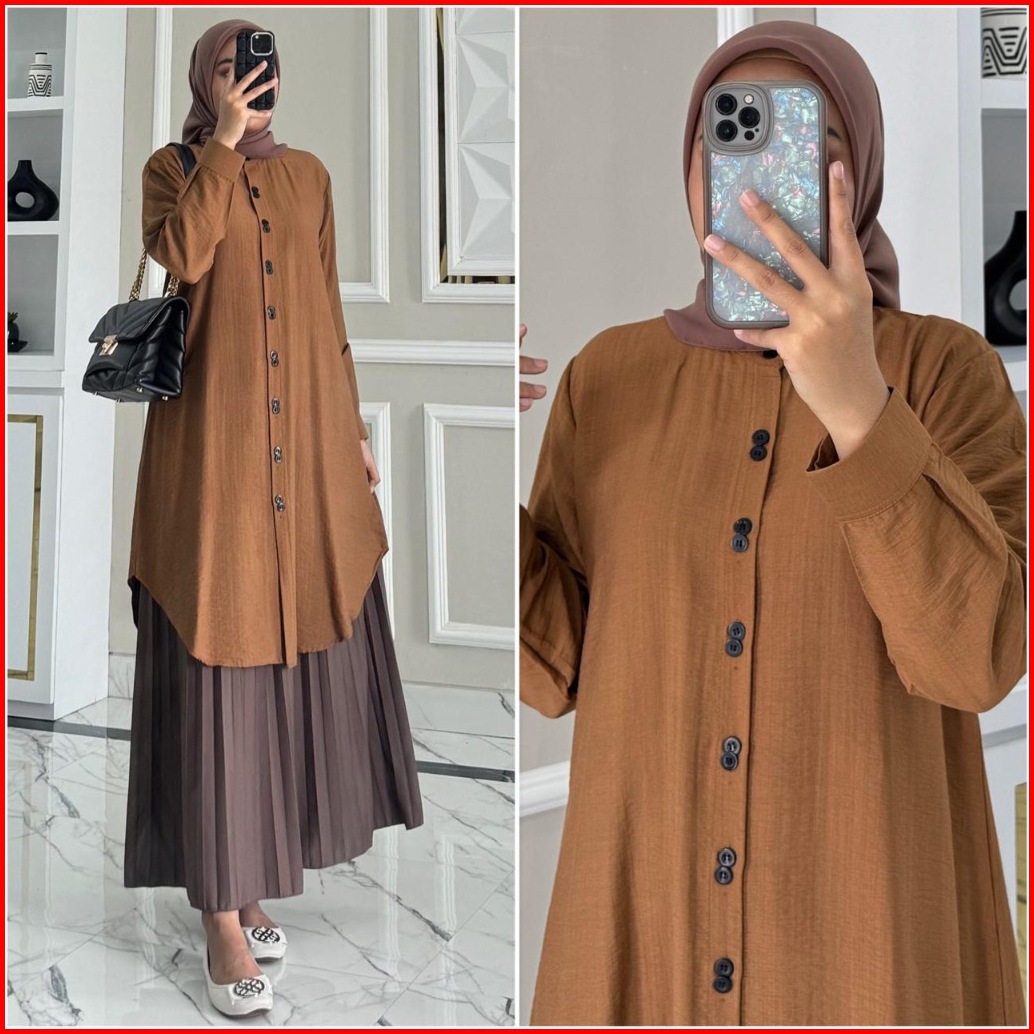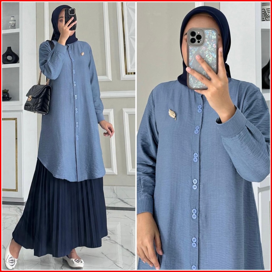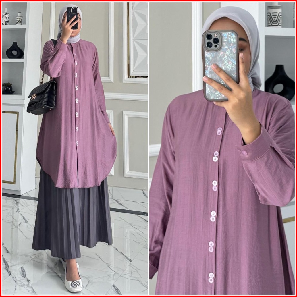 Aliyah Tunik By Zalfa Outfit Baju Atasan Wanita Muslim Tunik Kerja Kuliah Panjang Polos Polo Linen Premium Lengan Manset