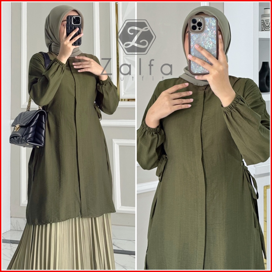 Isyana Tunik By Zalfa Outfit Atasan Wanita Polos Polo Linen