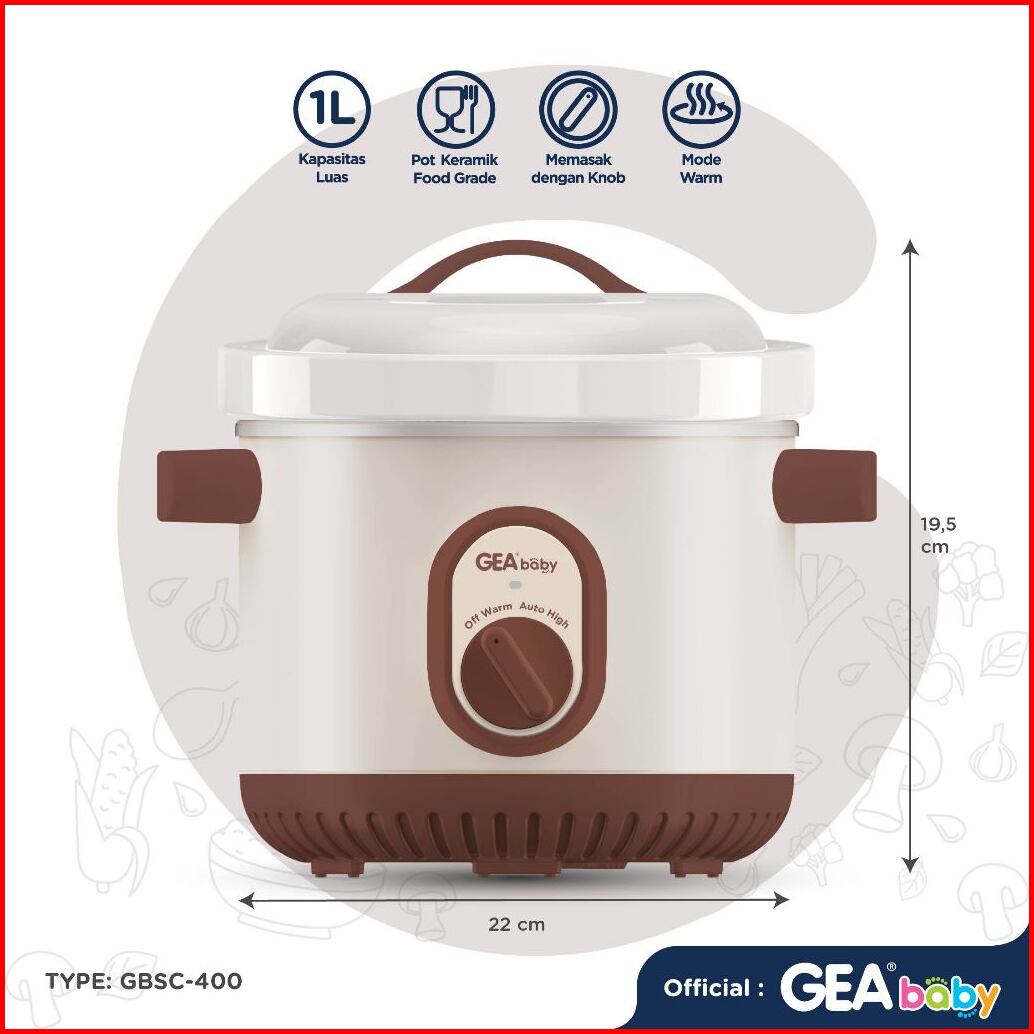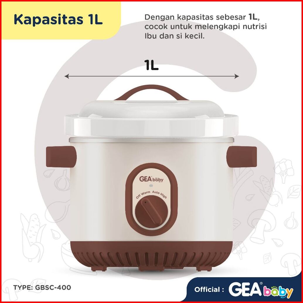 Gea Baby Smart Auto Slow Cooker Gbsc-400 1 Liter Cooker Panci Alat Masak Makanan Bayi